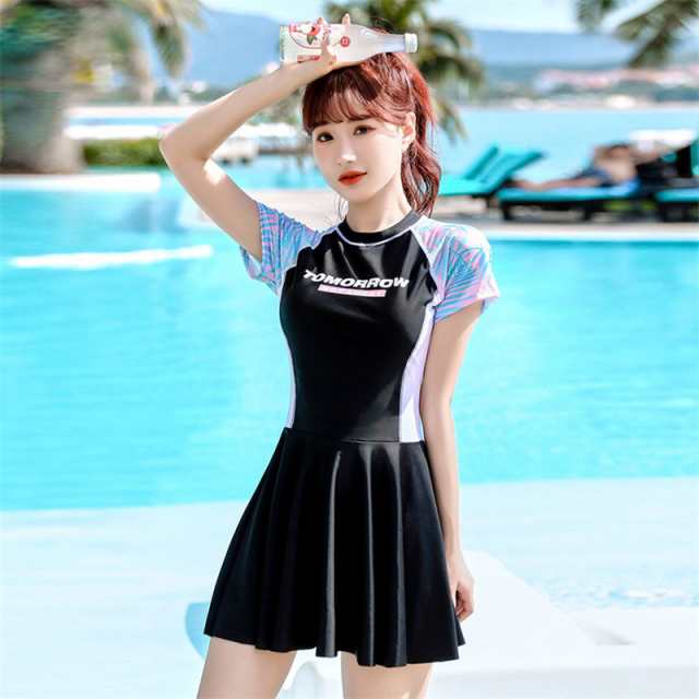 水着 レディース ワンピース タンキニ 水着 中学生 高校生 スポーティー オシャレ 着痩せ 体型カバー 学生 少女 小胸にもぴっ