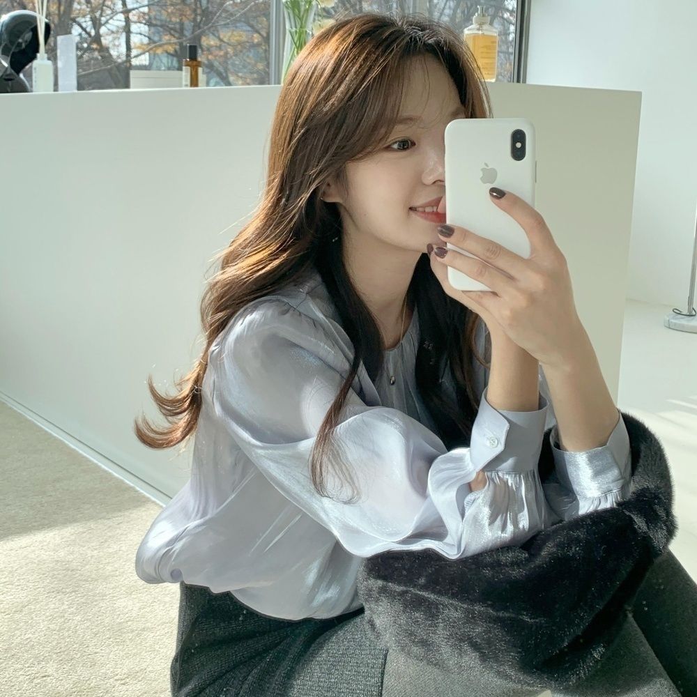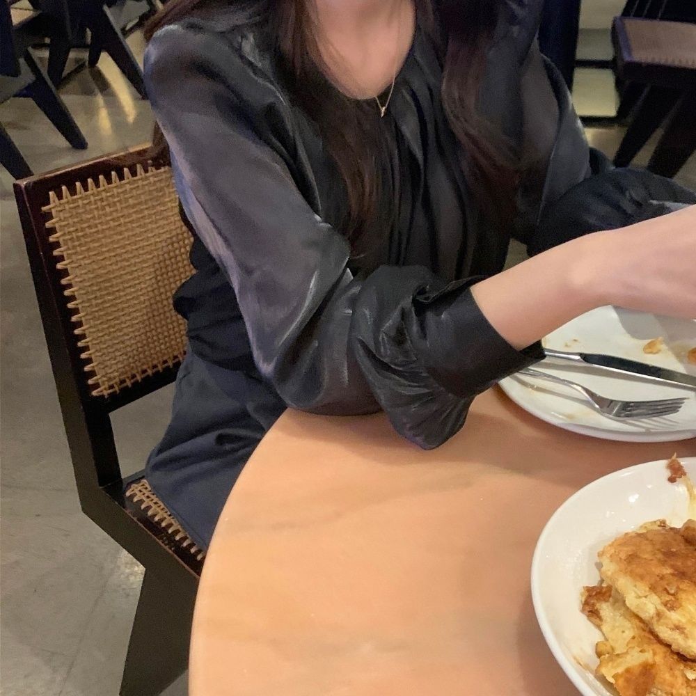 薄い生地バルーンスリーブブラウス 無地 長袖 シャツ・ブラウス