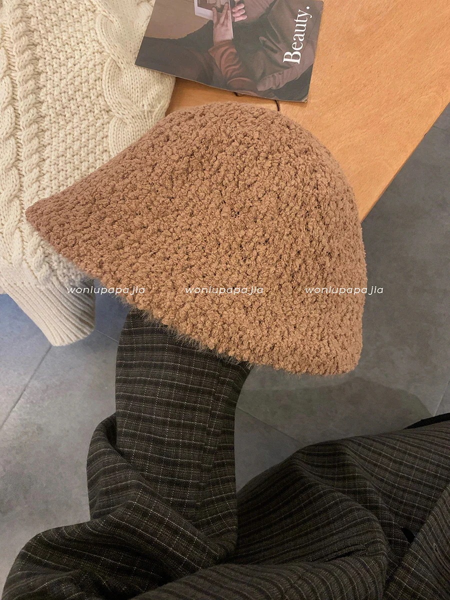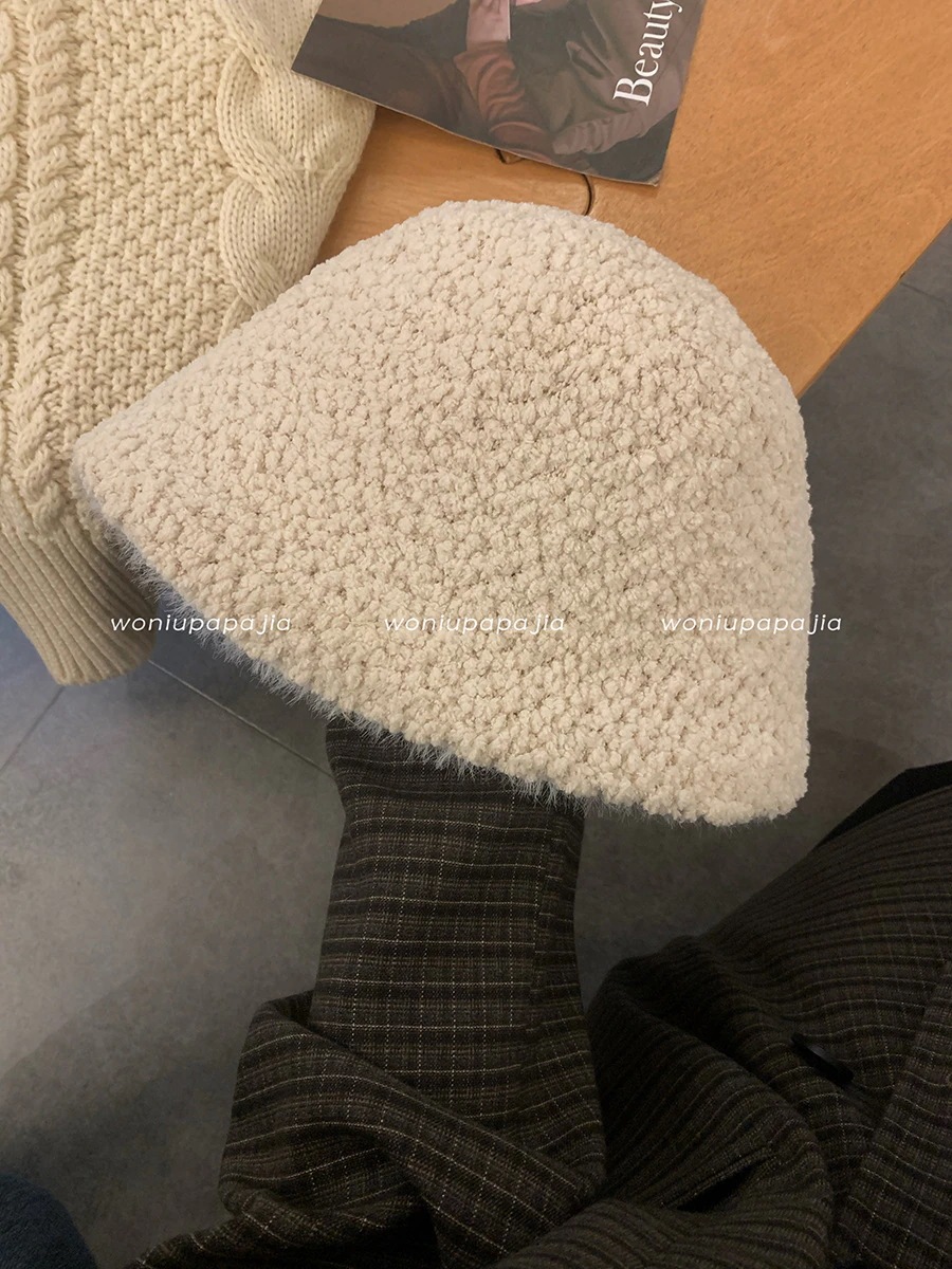2025年新作 白色フィッシャーマンハット 女性用 秋冬用 粒状 ラムファー ボンネット