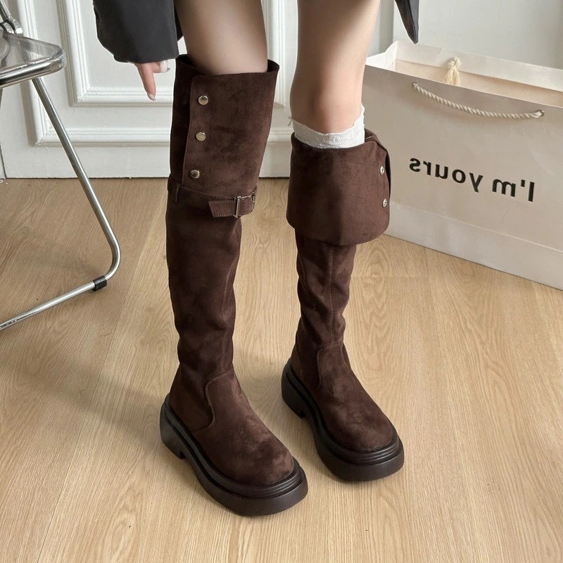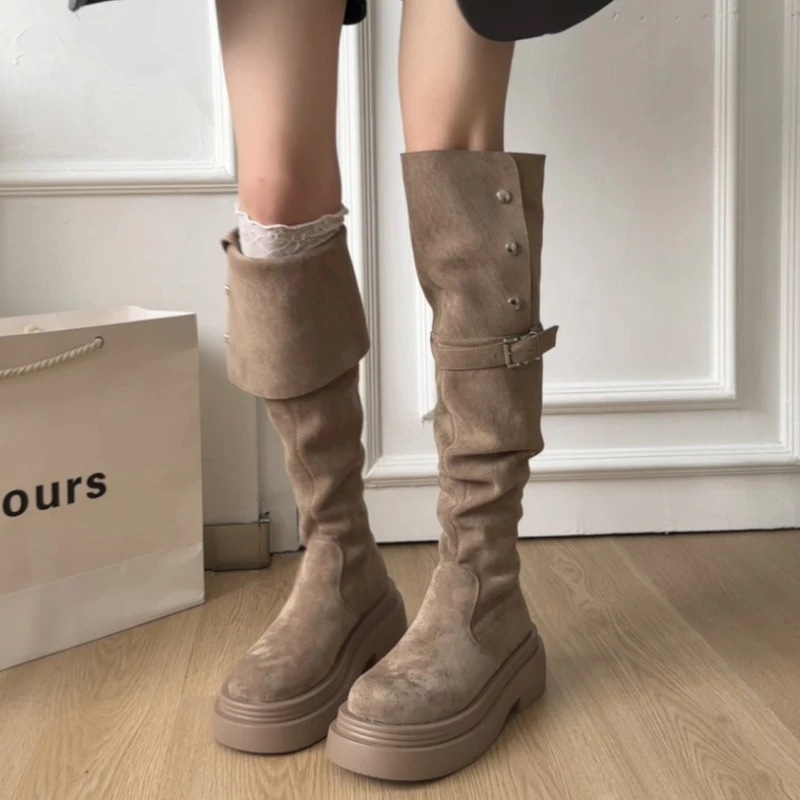 ロングブーツ女性2025秋冬新作厚底小柄な方におすすめ膝上ロングブーツスリムブーツ