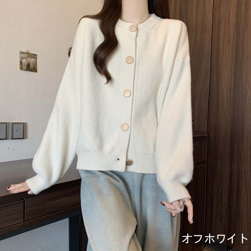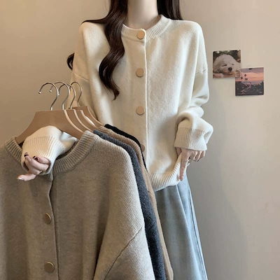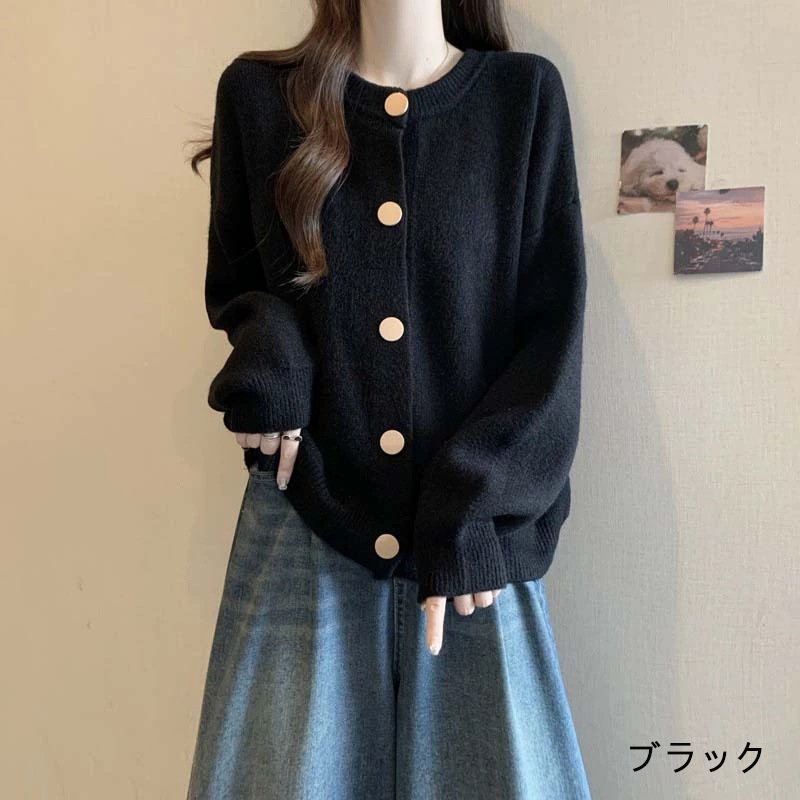 【ふわふわ柔らかい】シンプル単排ボタン 落肩スリーブ ラウンドネック ニットカーディガン レディース 春秋冬 おしゃれ 通勤 カジュアル 多色展開