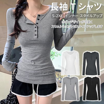 tシャツ トレーナー ボタン スリム 長袖 T シャツ レディース スタイルアップ インナー 正規肩 シンプル 早秋 学生 カジュアル