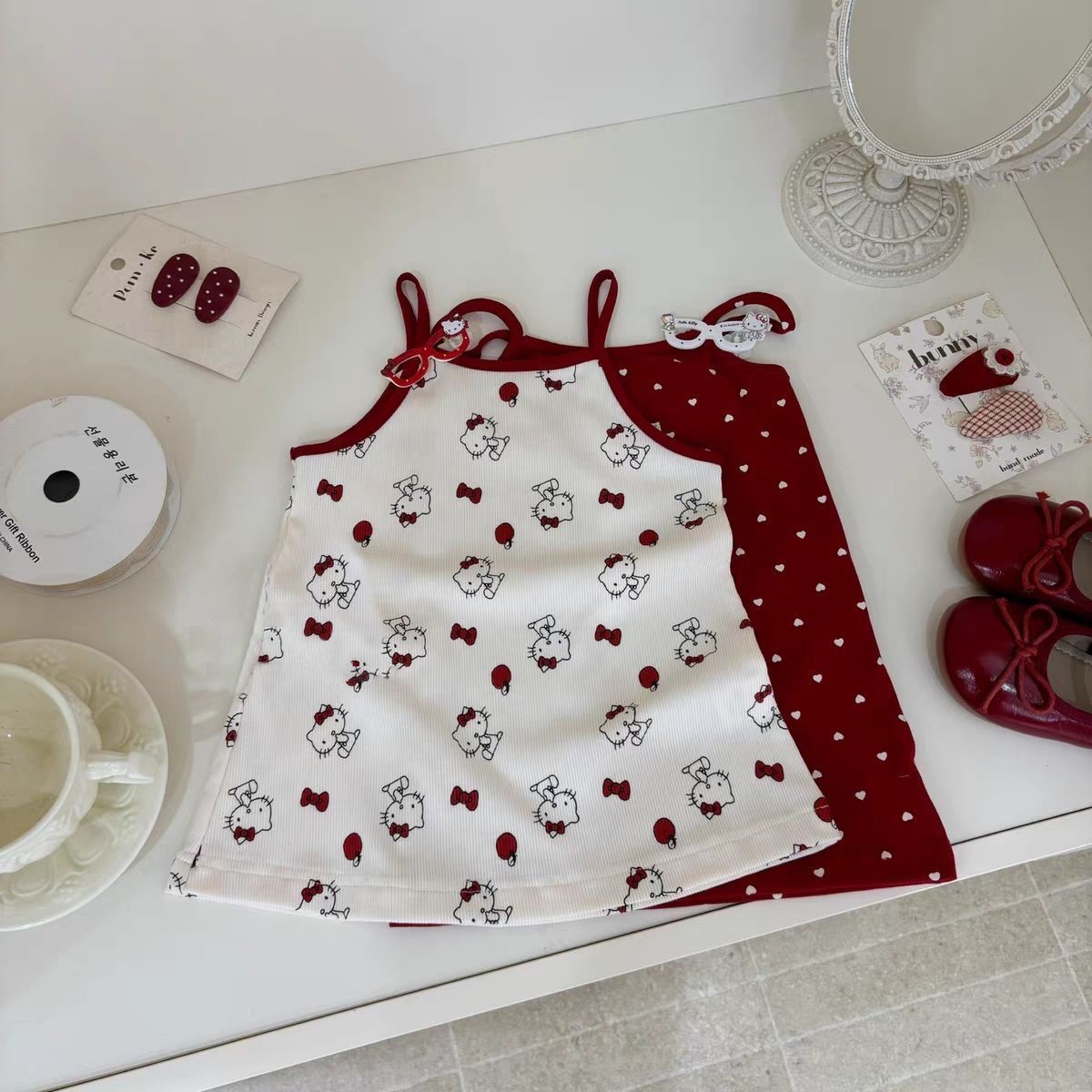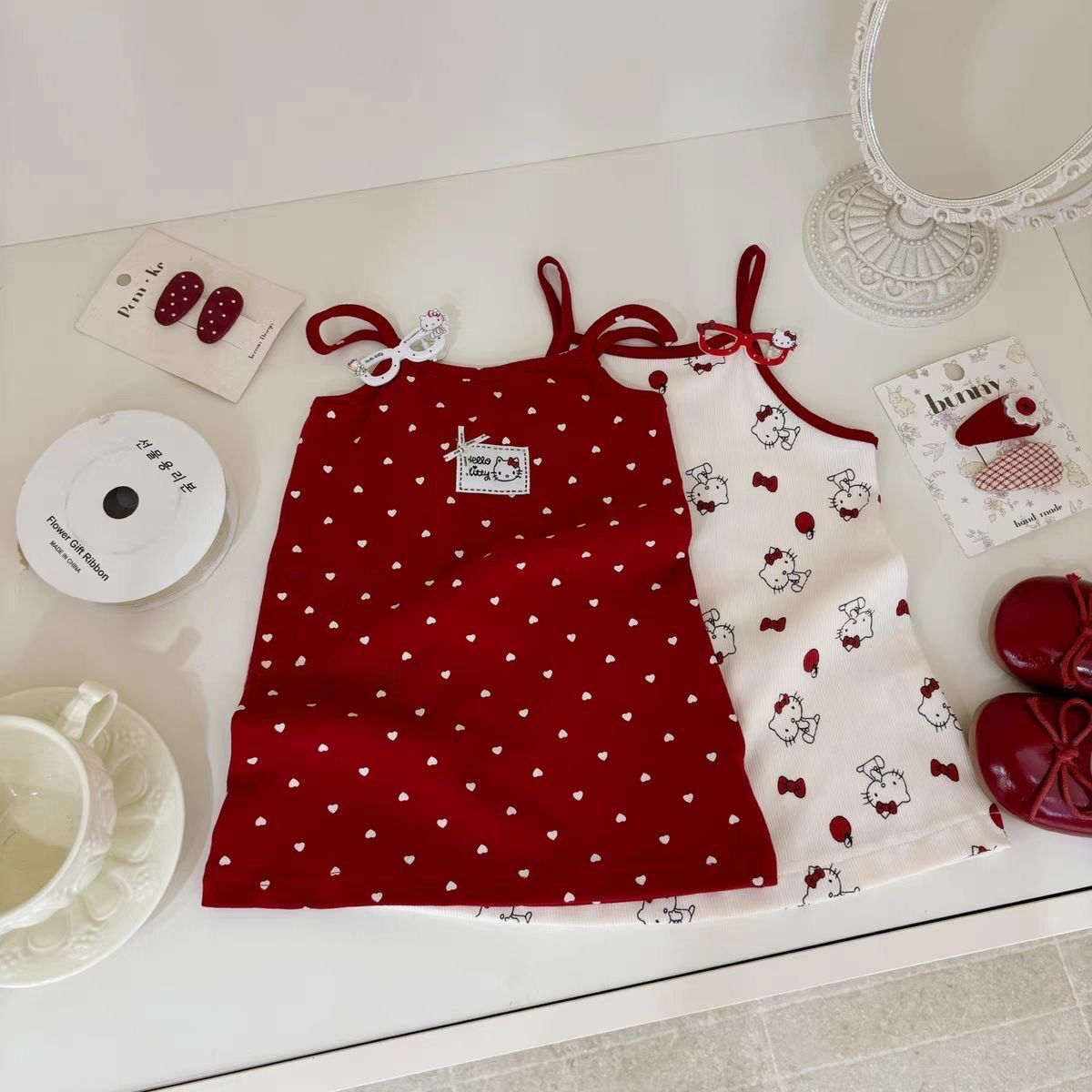 女の子用キティちゃんキャミソールワンピースベビーガールワンピース夏の新作子供服薄手のトレンドベストワンピース
