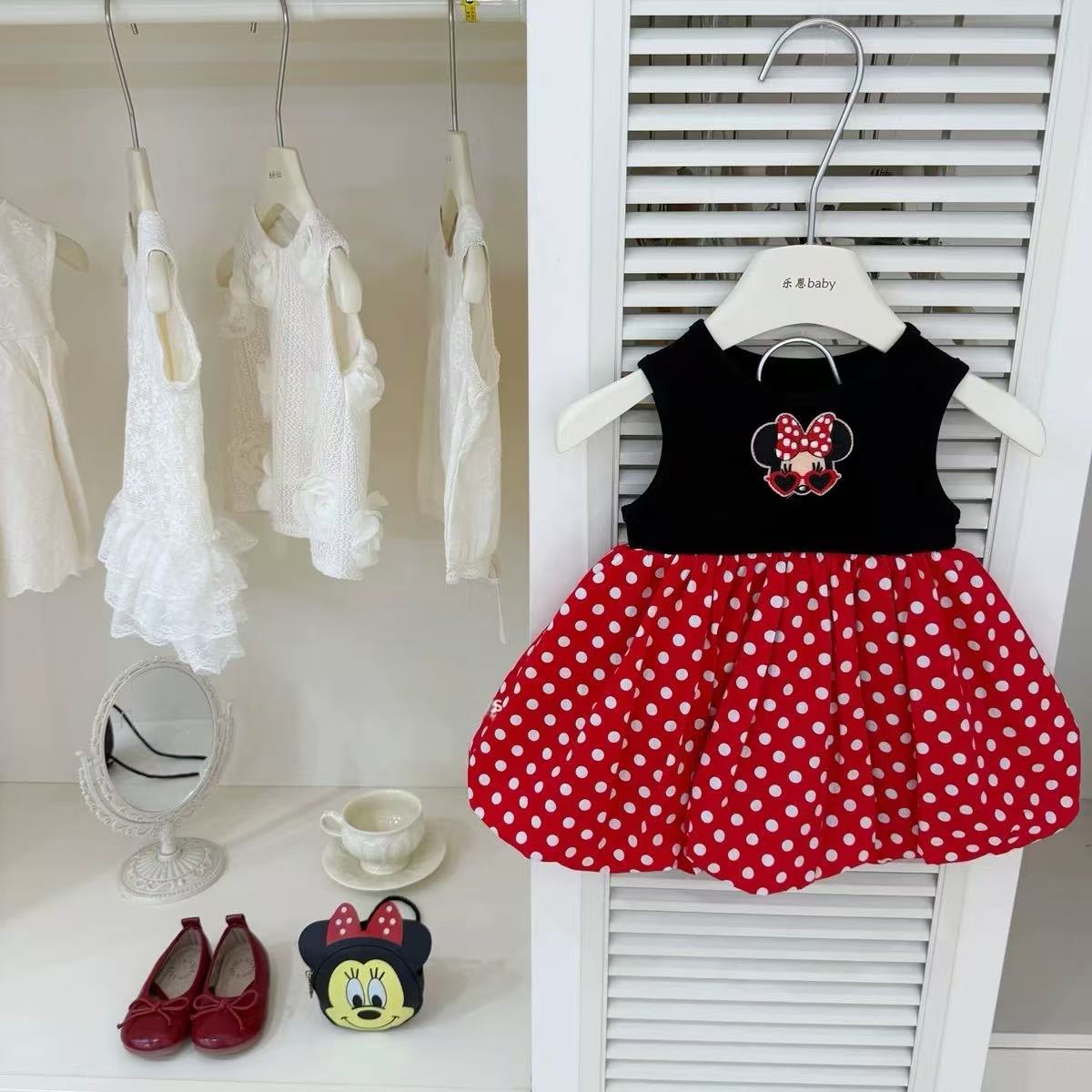 女の子用ワンピース夏の新作おしゃれで可愛らしい漫画風の水玉模様のタンクトップスカート