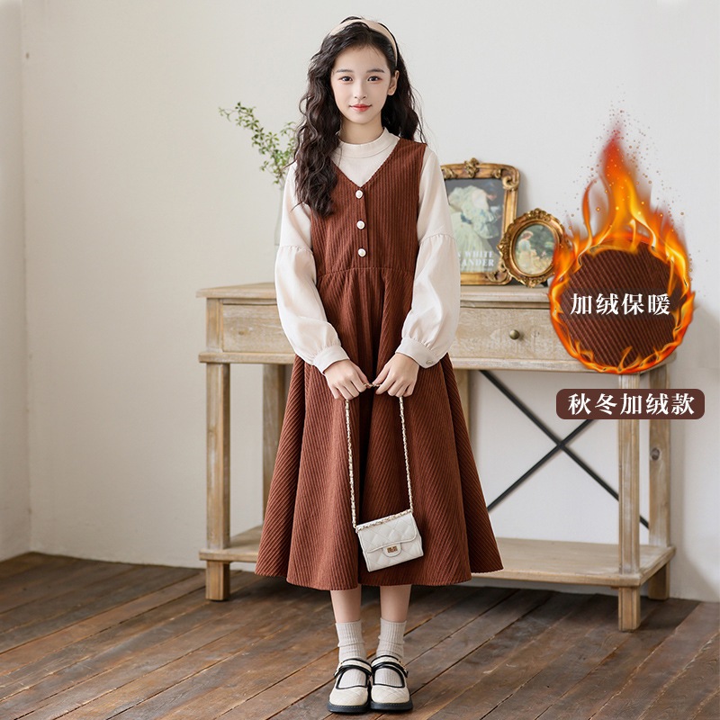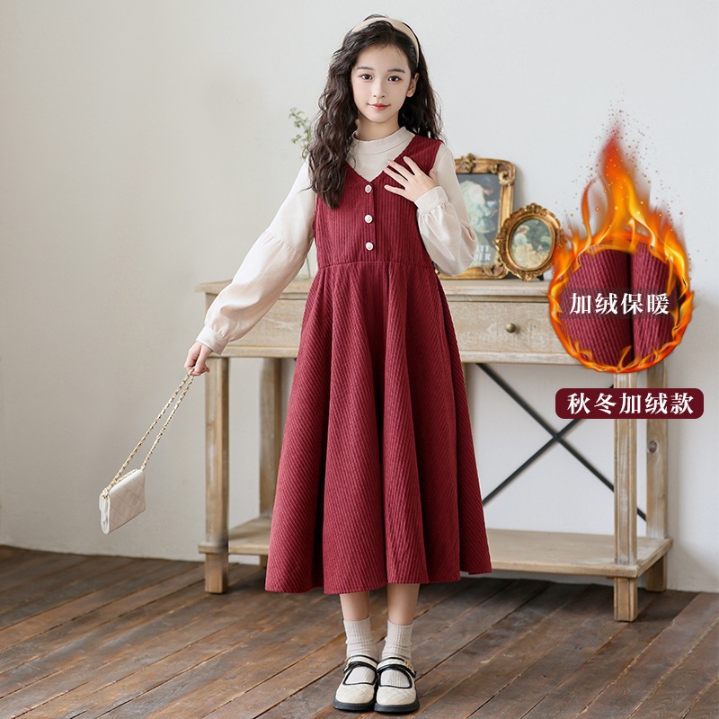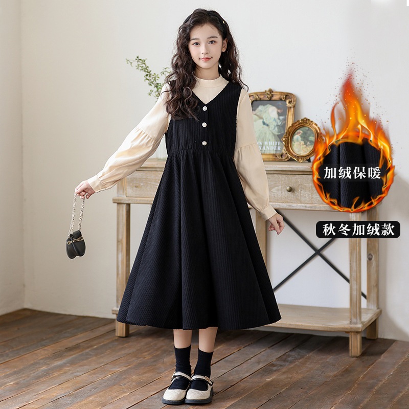 女の子ドレス秋と冬長袖小さなスタンドカラーフェイクツーピーススカート新しい中型と大型子供プリンセスドレス