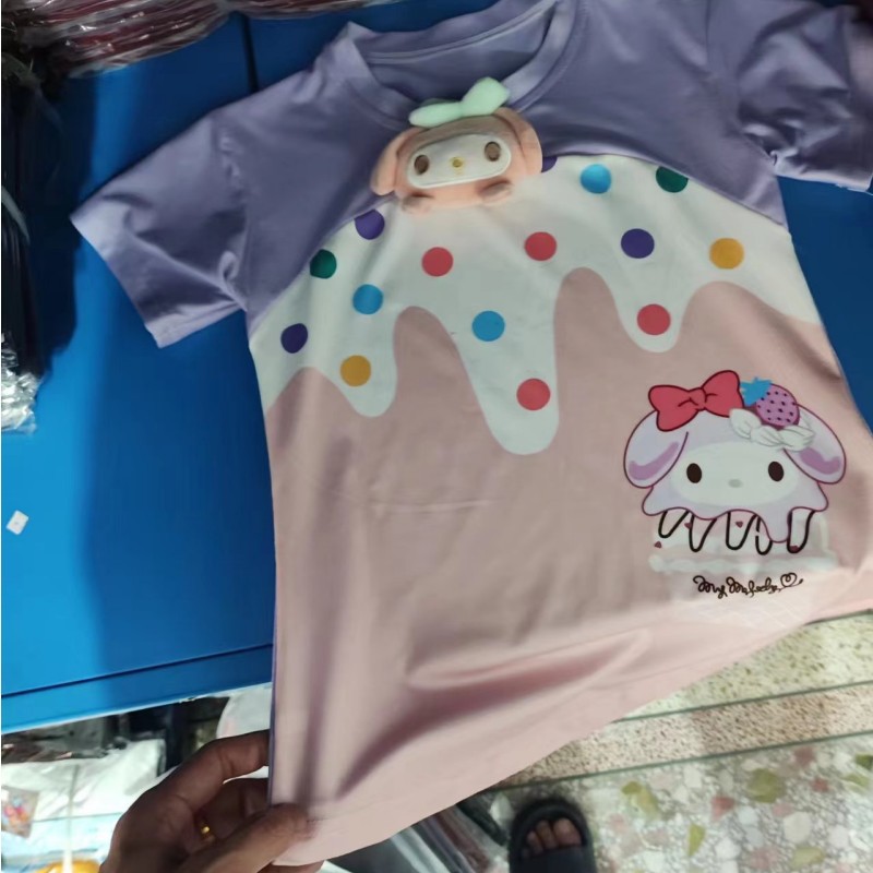 夏の新作さわやかな女の子用ワンピースカラフルな水玉模様とアイスクリーム柄立体的なメロディー人形付きワンピース