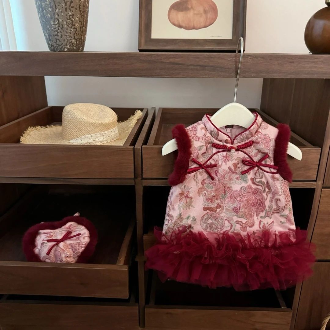 中国風女児用お正月ドレス冬の新作幼児用プリンセスドレス女児用お正月ワンピース1歳のお祝いドレス
