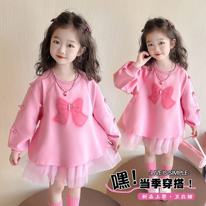 女の子用ワンピース 春の新作 おしゃれなスカート ベビープリンセスドレス 春秋用メッシュスウェットワンピース