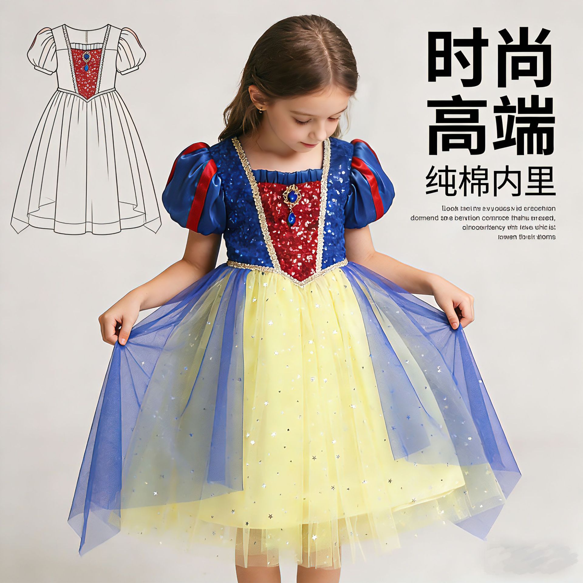 白雪姫ドレスおしゃれな女の子用ワンピースベビーガールズ用アナと雪の女王プリンセスドレス夏物