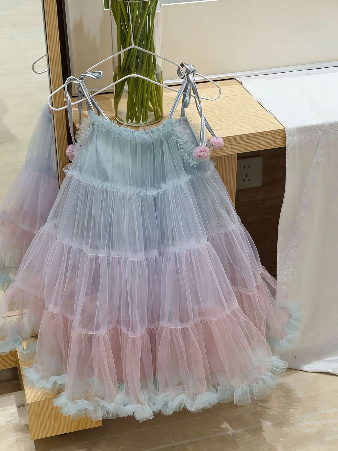 夏用女児メッシュチュールスカートグラデーションキャミソールスカート演出服子供服女児スカート
