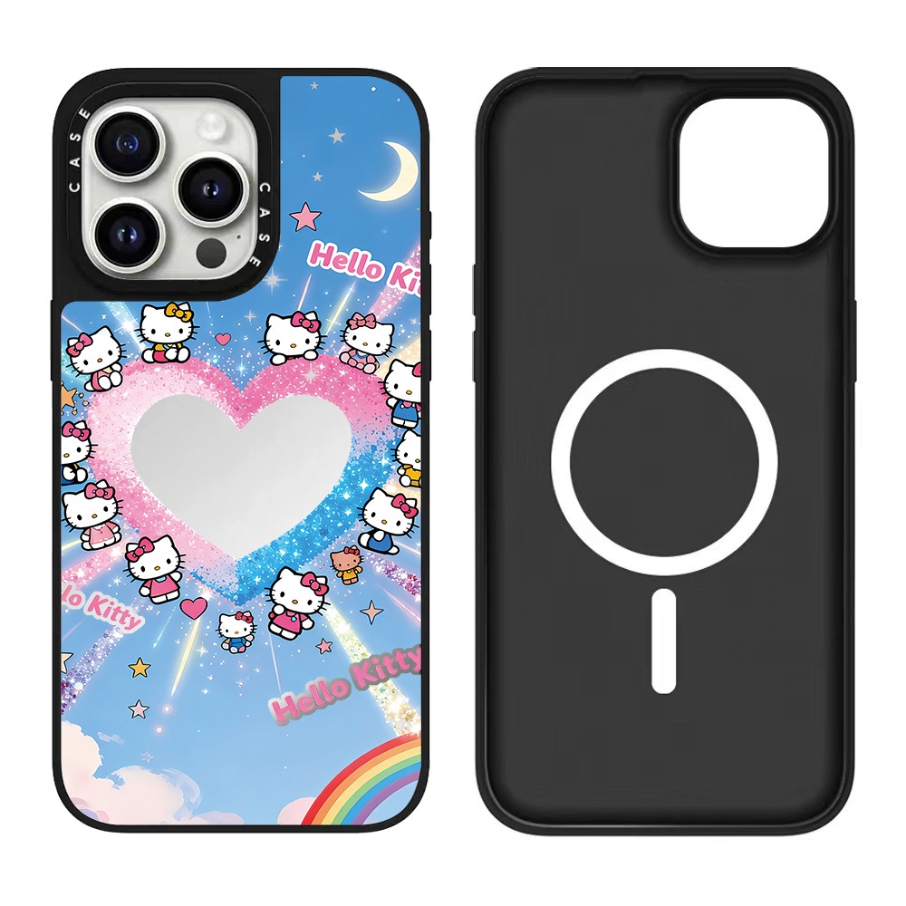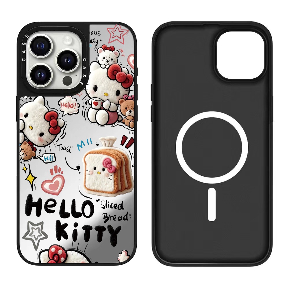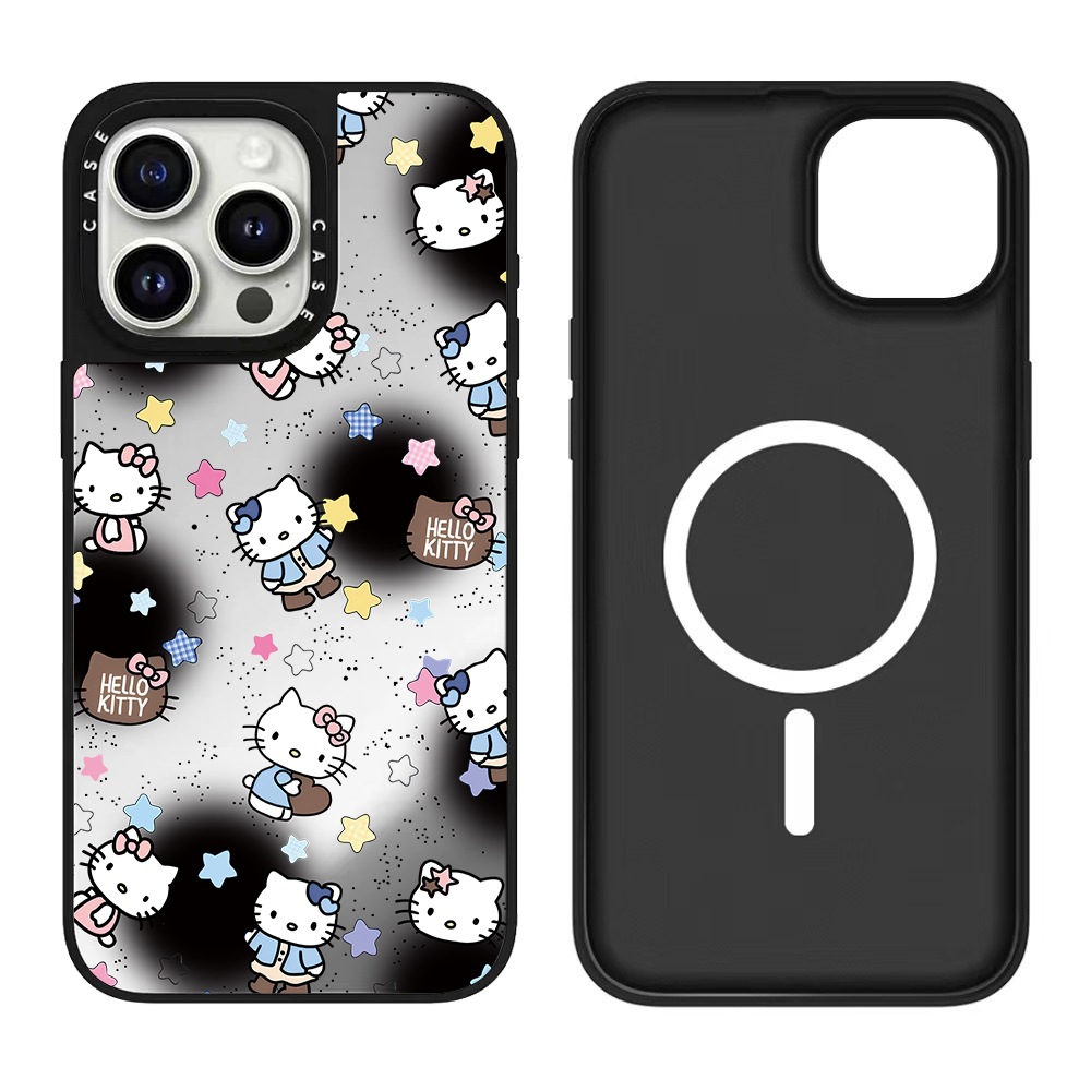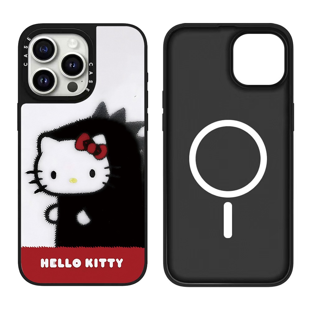 可愛いアニメスタイルの Hello Kitty 電話ケース磁気吸着式全面保護カバー機種に依存しない耐衝撃保護カバー 携帯電話に適用するモデルiPhone 17/16/15/14 PRO PROMA