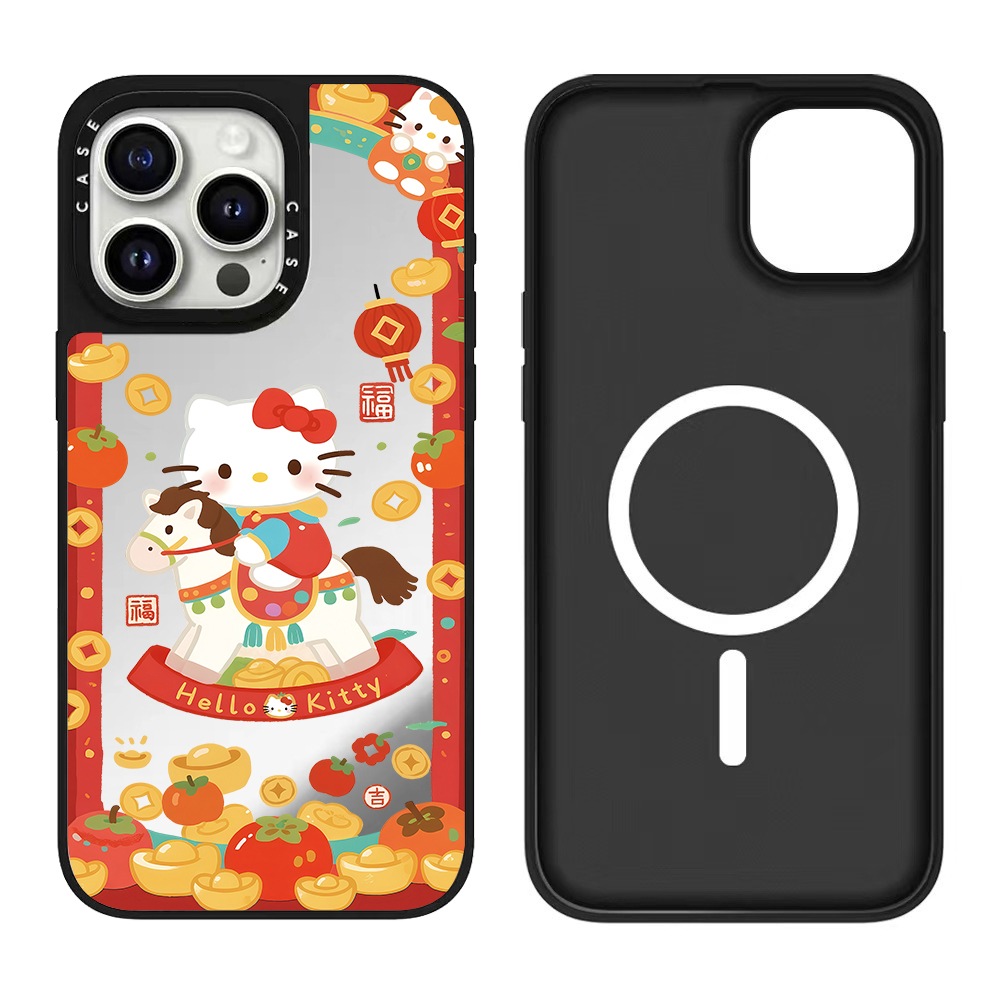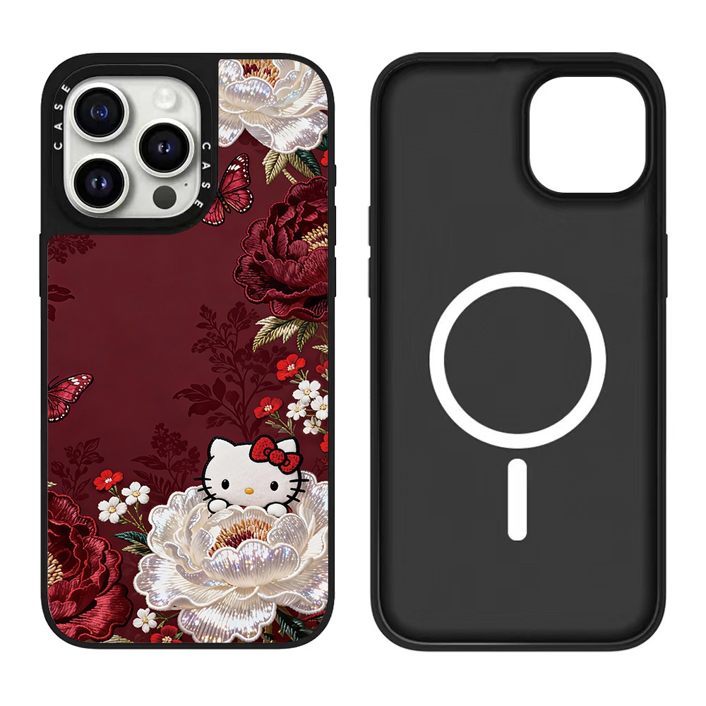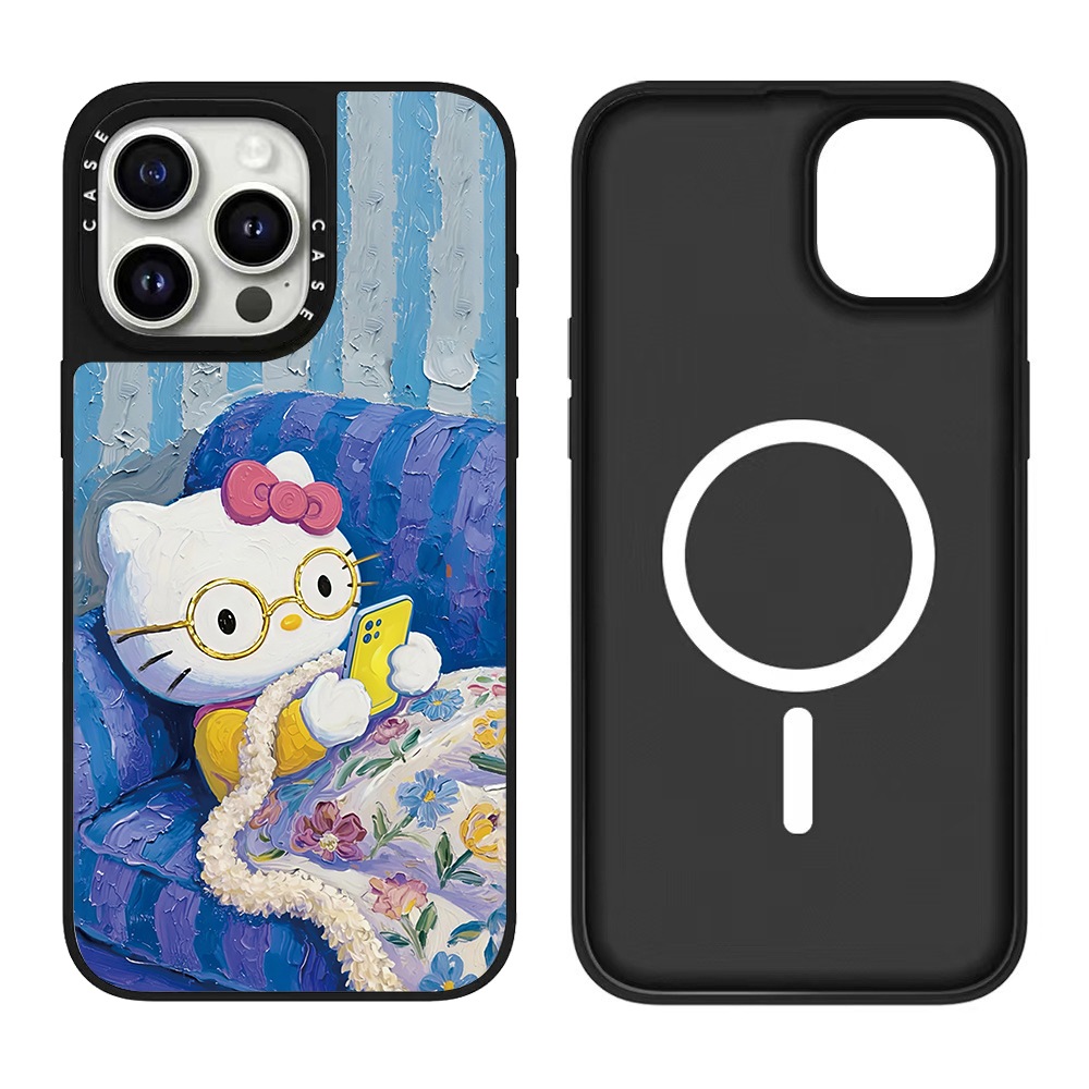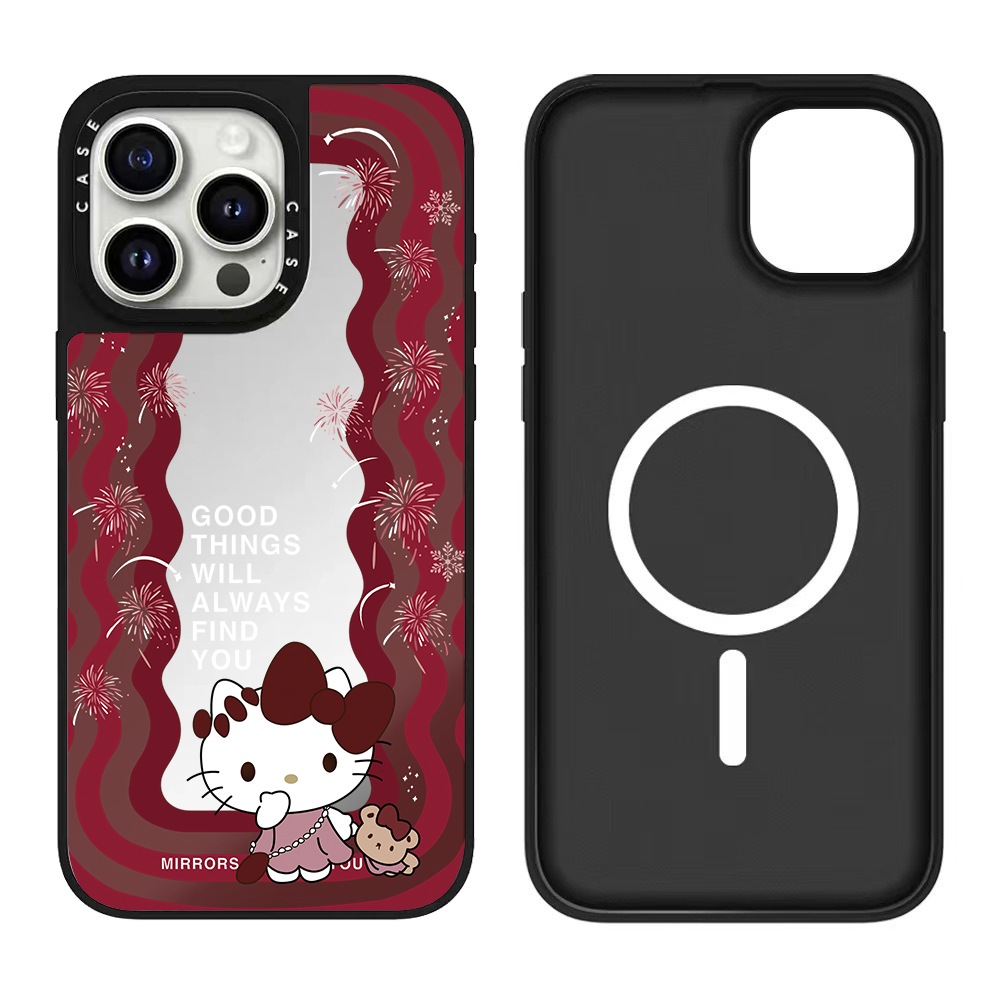 可愛いアニメスタイルの Hello Kitty 電話ケース磁気吸着式全面保護カバー機種に依存しない耐衝撃保護カバー 携帯電話に適用するモデルiPhone 17/16/15/14 PRO PROMA