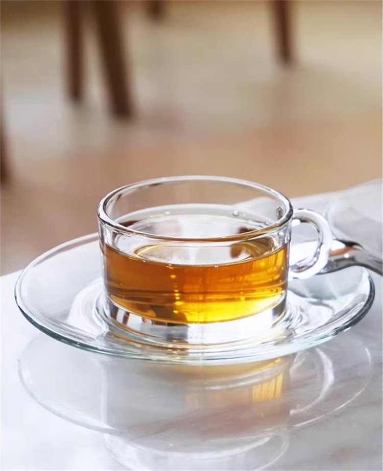 激安セール アフタヌーンティー用 耐熱ガラスカップ&ソーサー 90ml ハンドル付き 花茶・エスプレッソ品鑑 ミニマルデザイン