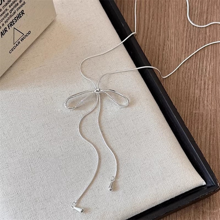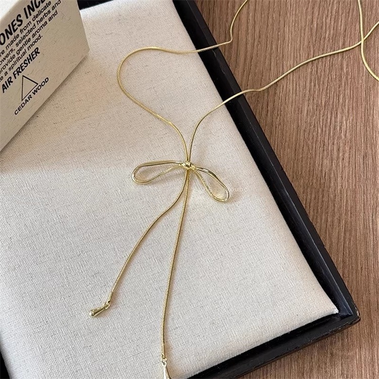 激安セール 2026年新作 カフス式 ロングネックレス リボンペンダント 引き出しチェーン レイヤード 秋冬コーデ おしゃれ レディースアクセ