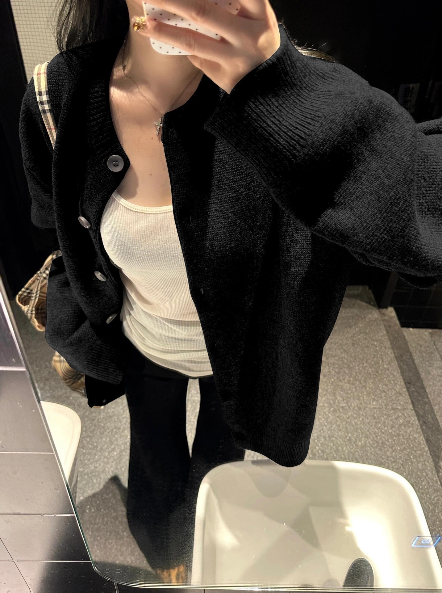 2026 春 カーディガン 新作 ブラック ニットカーディガン ゆったり カジュアル デザイン感 セーター アウター トップス レディースファッション