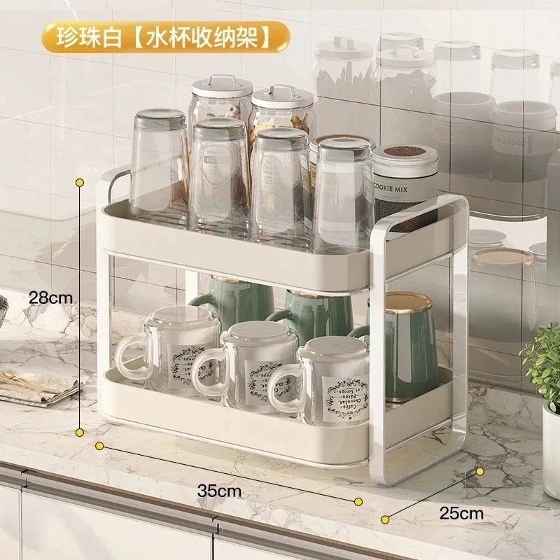 ティーカップガラスカップ収納ラック二層排水口家庭用トレイデスクトップオフィスを乾燥させるためのウォーターカップラック