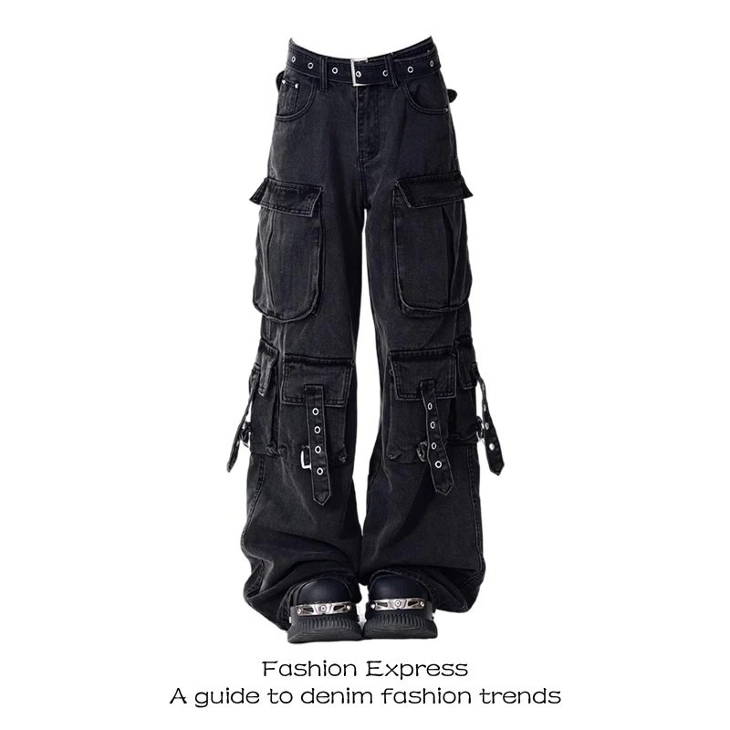 アメリカンレトロハイストリートワークジーンズレディースストレートワイドレッグカジュアルパンツ2026新ファッショントレンドパンツ