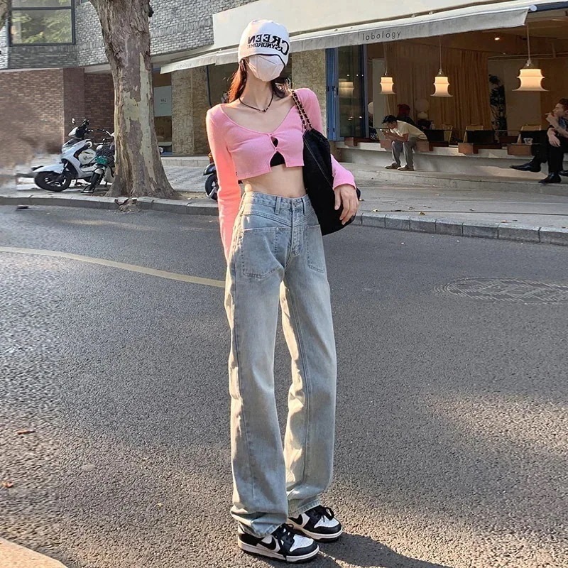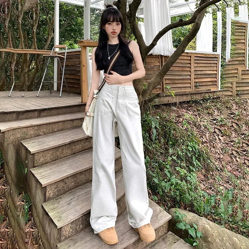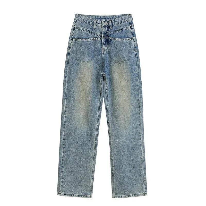 デニムボトムス ジーンズ ハイウェストゆったり レディースストレート レディース服 ロングパンツ 着痩せ 長ズボン ワイドパンツ ジーンズ ワイドパンツ デザイン感 ロングズボン