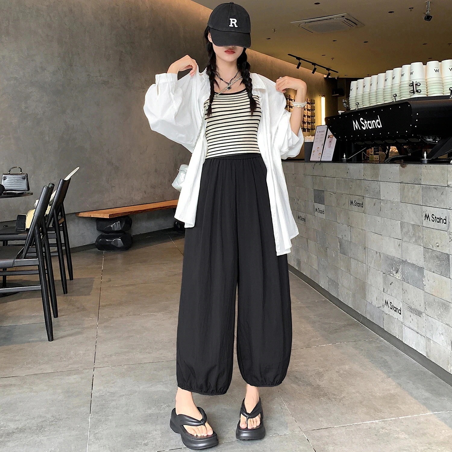 ワイドパンツ ワイドパンツ レディース アイスシルク速乾カジュアルパンツ 9分丈ハーレムパンツ 夏の日焼け止め涼感ルーズワイドパンツ