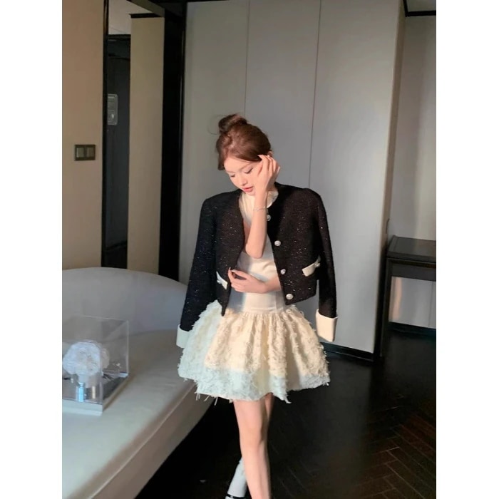 リボンベストワンピース女性用 春秋ショート丈アウター2点セット 韓国ファッション 涼しく楽ちんセット フレンチテイストセットアップ セットアップ