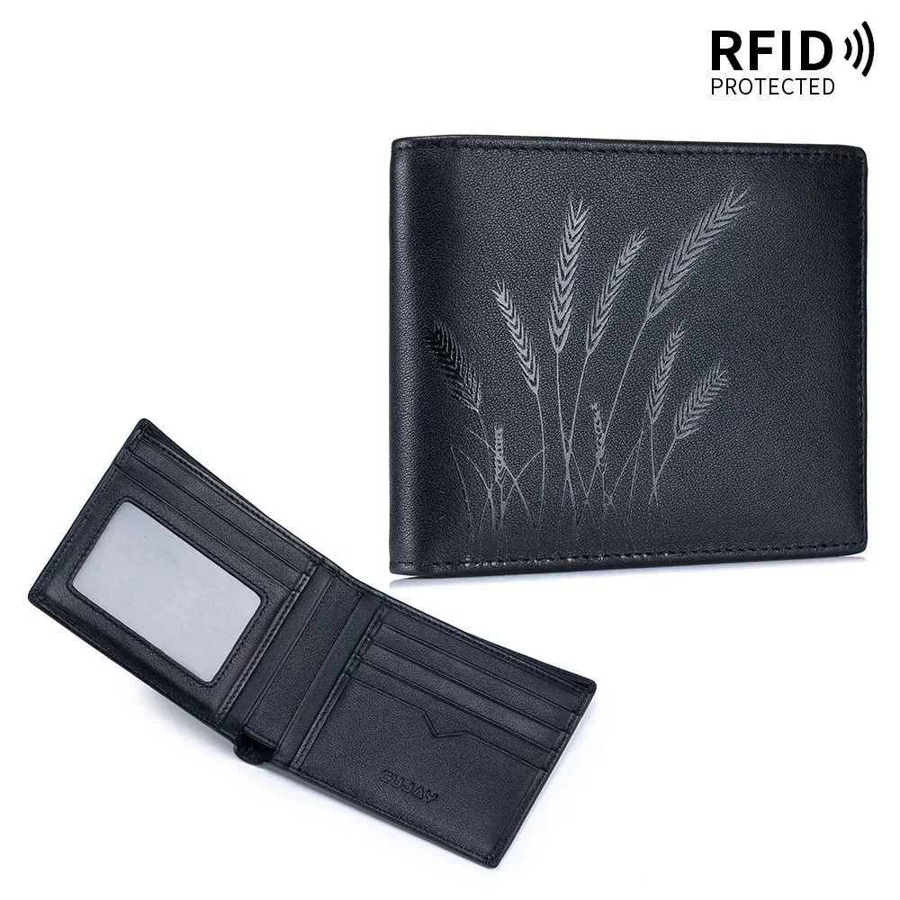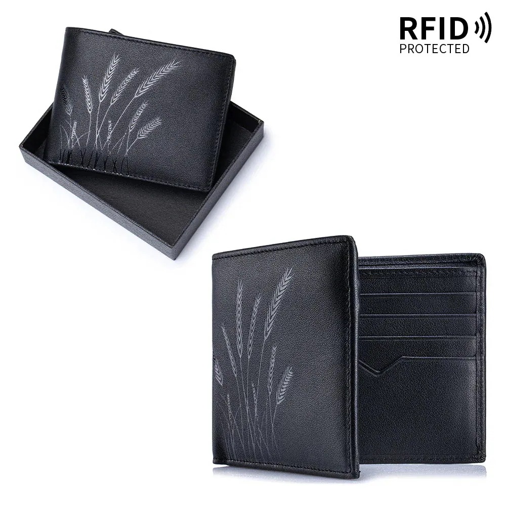 RFID韓国牛革ビジネスメンズショート財布二つ折り財布カードケースの彼氏の誕生日プレゼントにギフトケースをプレゼント