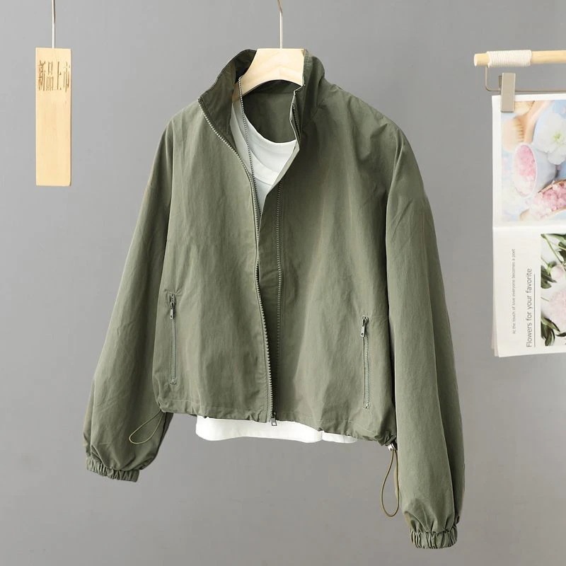 ショート丈ポンチョ春夏新作ファスナーゆったり工装パーカーカジュアルジャケット小柄女