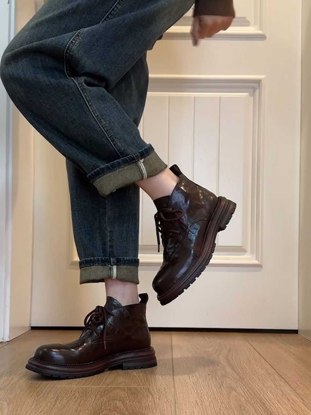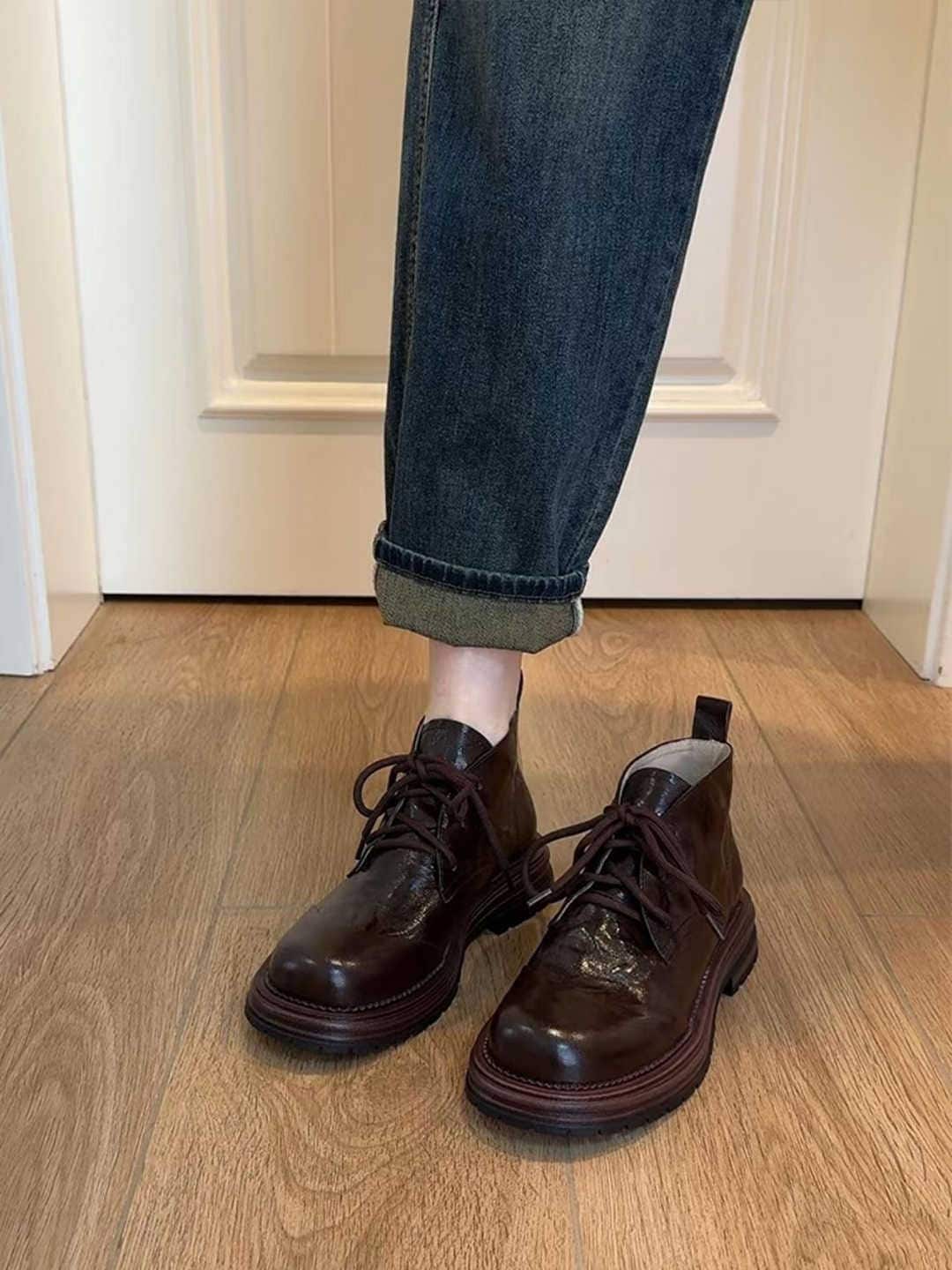 【最安値に挑戦】2026新作 レディース ブーツ 厚底 レトロ ラウンドトゥ レースアップ マーチンブーツ レディース ブリティッシュ シンプル 履き心地良い ショートブーツ バイカーブーツ 韓国ファ