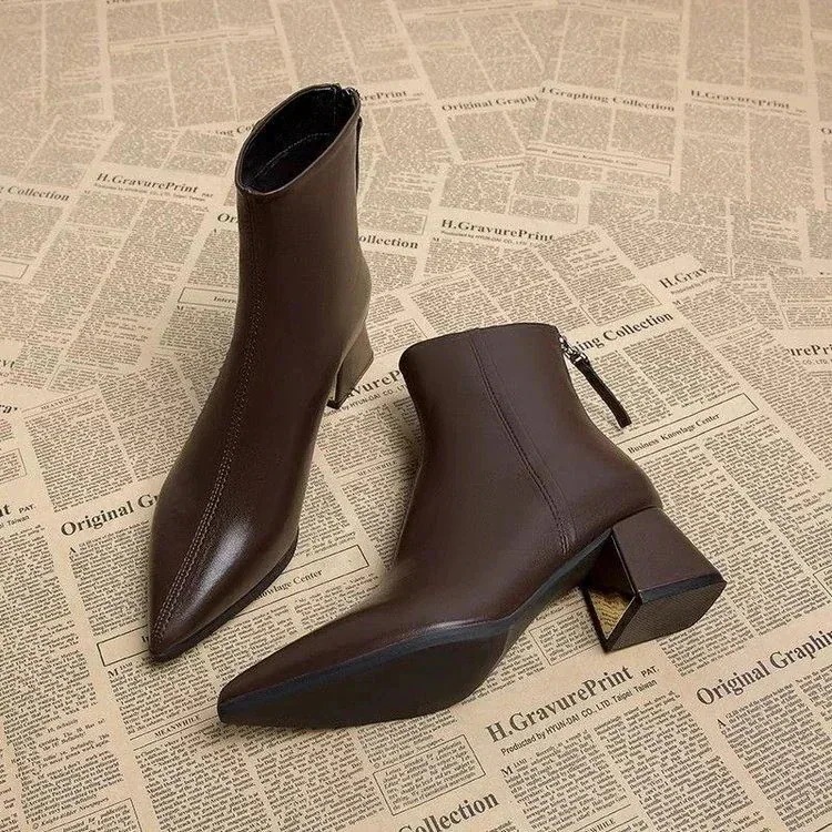 【最安値に挑戦】2026新作 レディース ブーツ高級感 ショートブーツ レディース 春秋 シングルブーツ フレンチスタイル 太ヒール スリムブーツ マーチンブーツ トゥポイント ハイヒール 秋冬 レデ