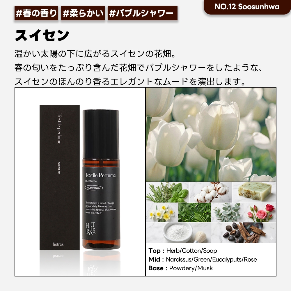 韓国から発送だったので少し時間はかかりましたが、綺麗な状態で届きました。ファブリックミストですが、噴射は狭めでピンポイントにかけるのがいいと思いました。香りはとてもいいです。