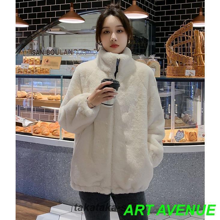 ファージャケット レディース アウター ジャケット フェイクファーコート ショートコート ファーブルゾン スタンドカラー 白 ゆったり