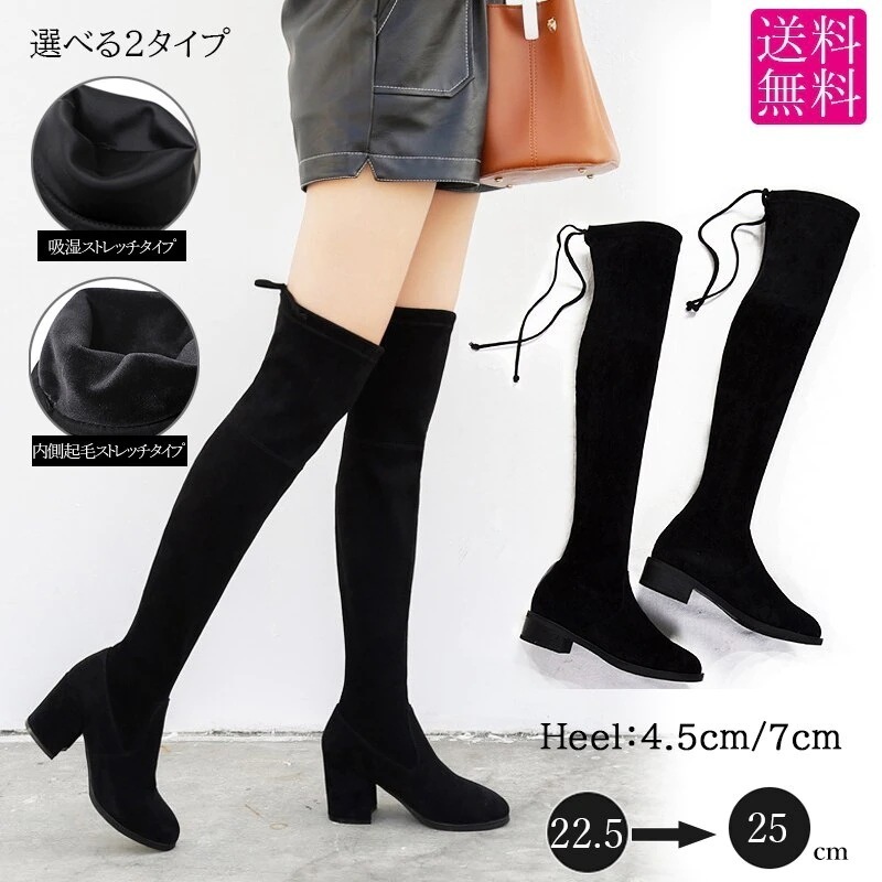 今すぐ欲しい一味違う肌触りのいい素材525cm2タイプ45&7cmヒールリボン付きニーハイブーツ膝上まで