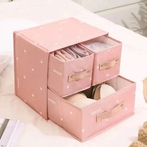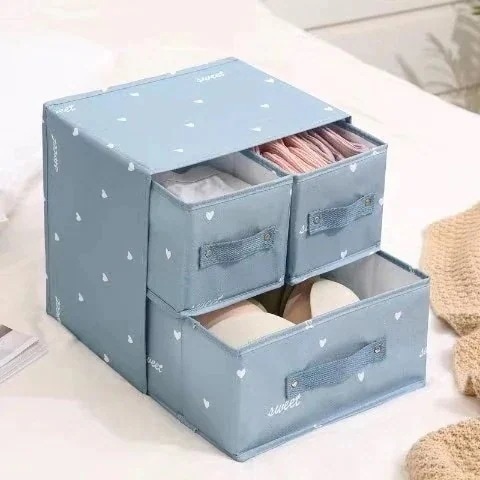 下着収納ボックス2層 ランジェリー 折りたたみ 蓋付き 仕切り 小物整理ボックス 多機能 おしゃれ 省スペース 引出し 防湿 防カビ 水洗い