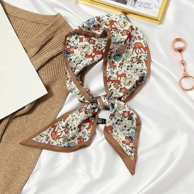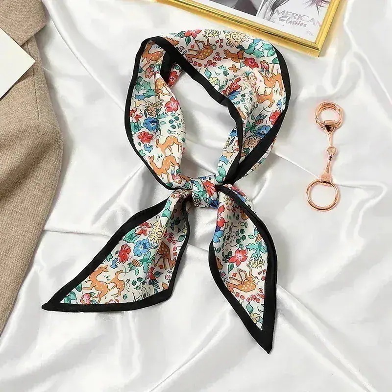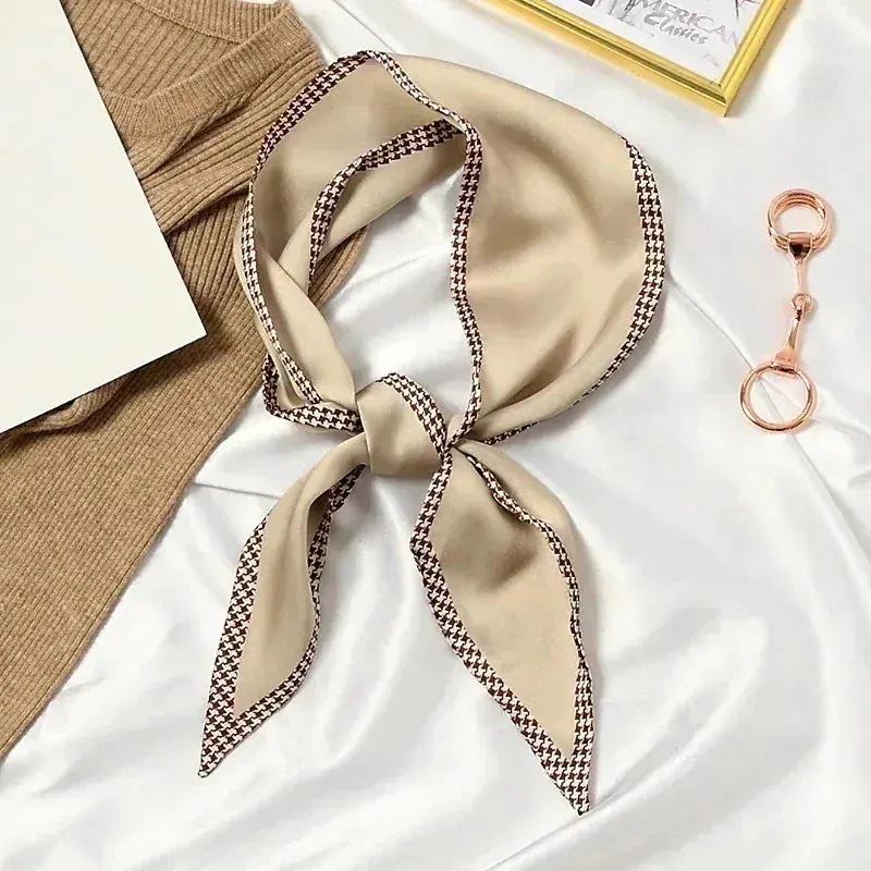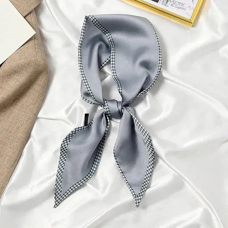 全色 ミニスカーフ レディース ネック スリム スカーフ 千鳥格子 バッグスカーフ リボンスカーフ プチスカーフ 持ち手 ヘアアレンジ