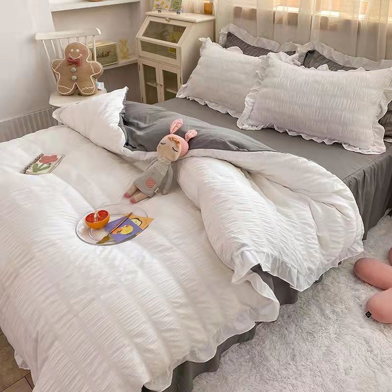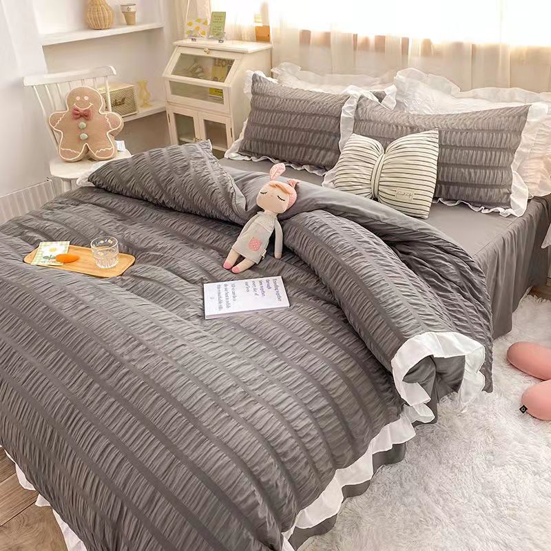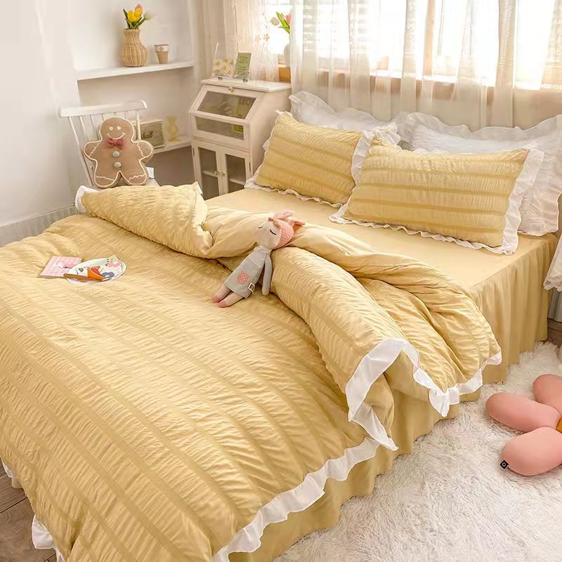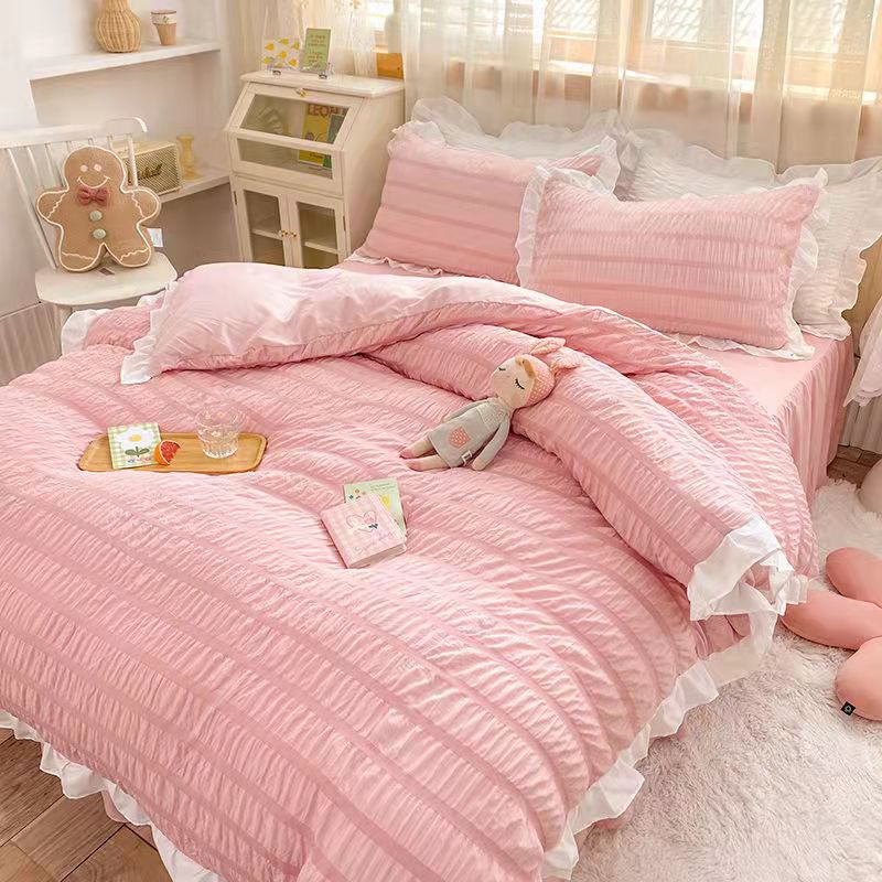 韓国水洗綿ベッド4点セット布団カバーシングル枕カバー4点セット少女風寝具布団カバー3点セット