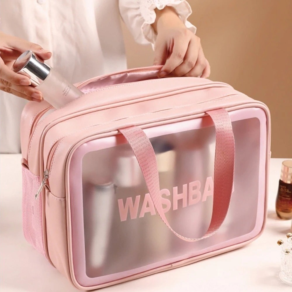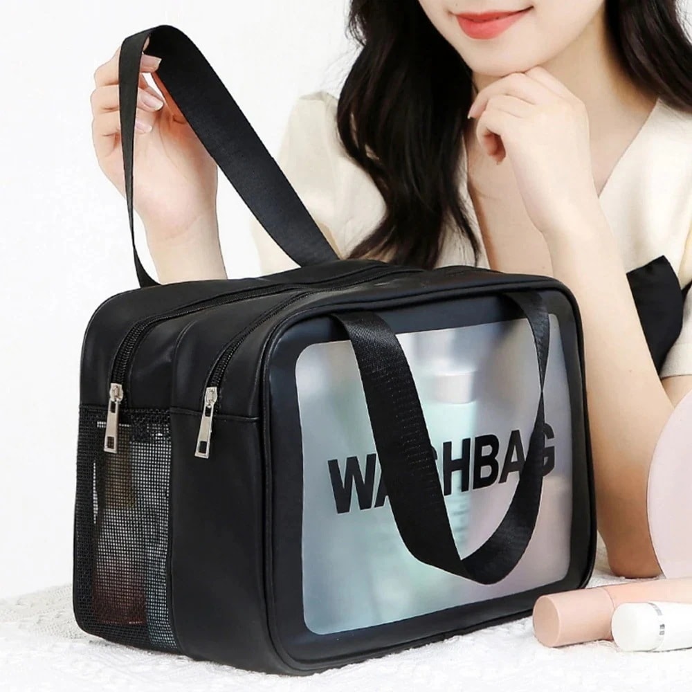 化粧バッグ クリアコスメポーチ スクエア ラージ ジッパー ハンドバッグ [3カラー]153