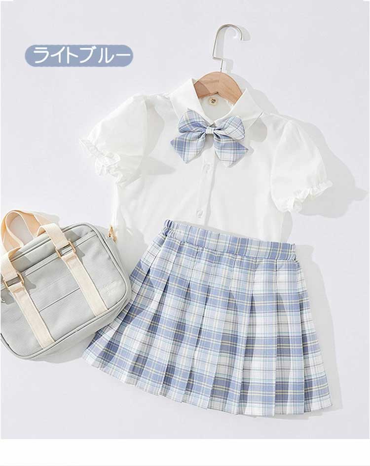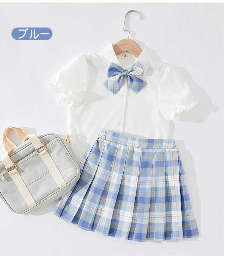 子供 キッズ トップス スカートスクール 制服 学生制服 プリーツスカート 女の子 子供服 フォーマルスーツ 可愛い JK制服 卒業 卒園 半袖 コスプレ 上下セット 仮装 セットアップ インナーパ
