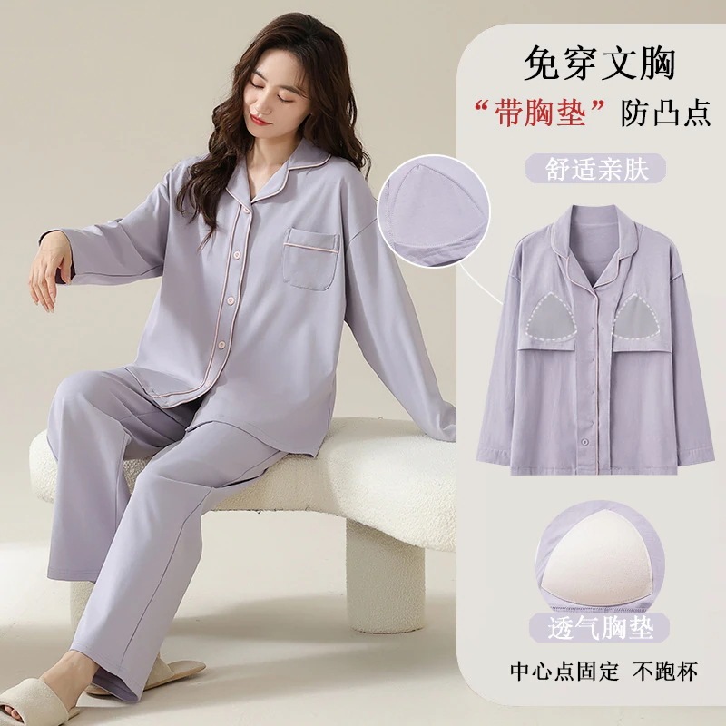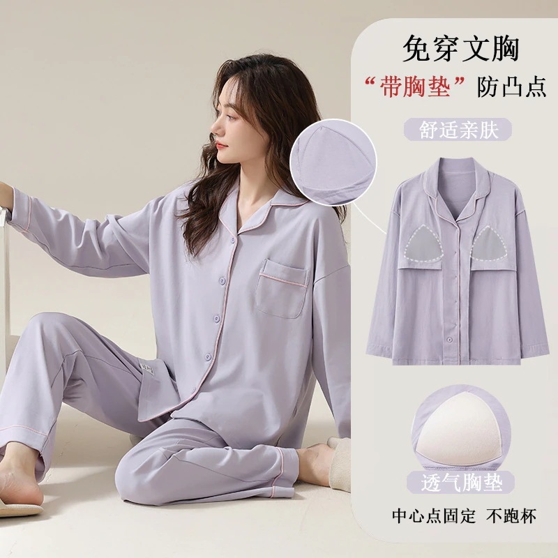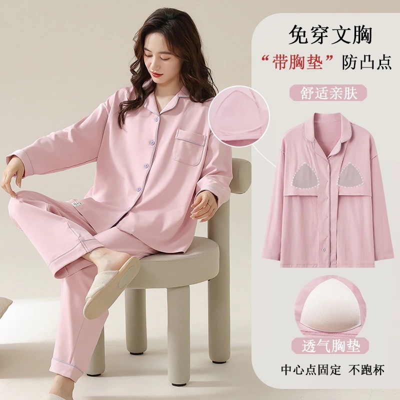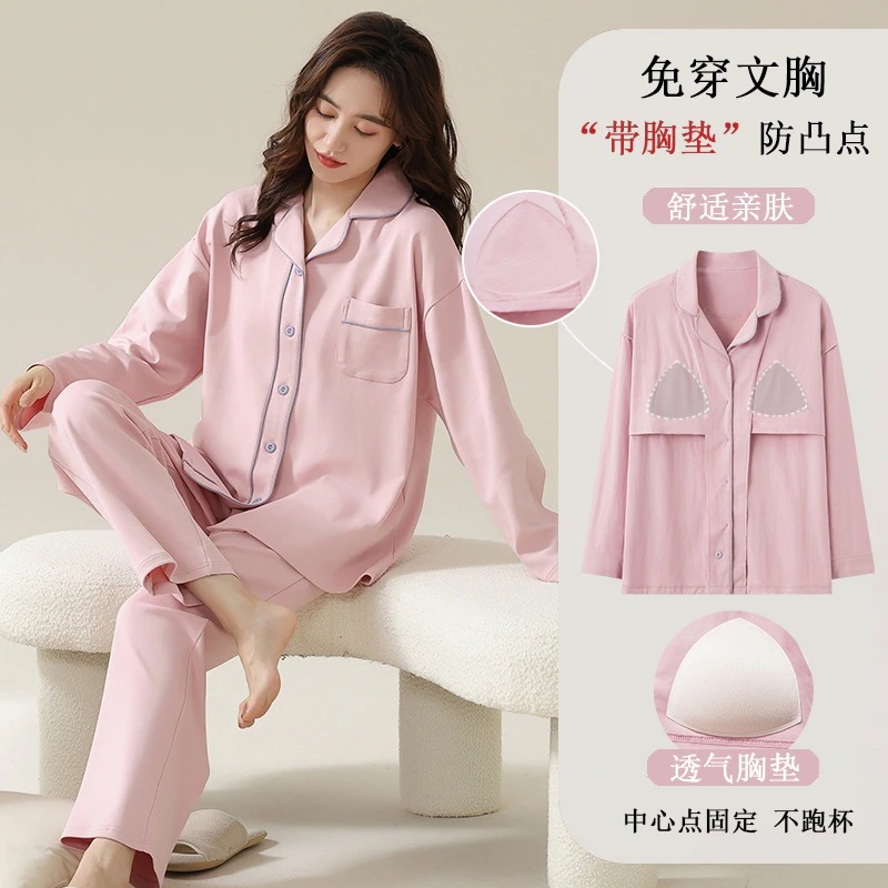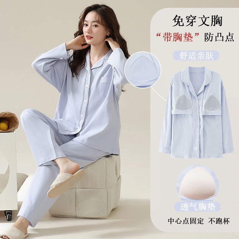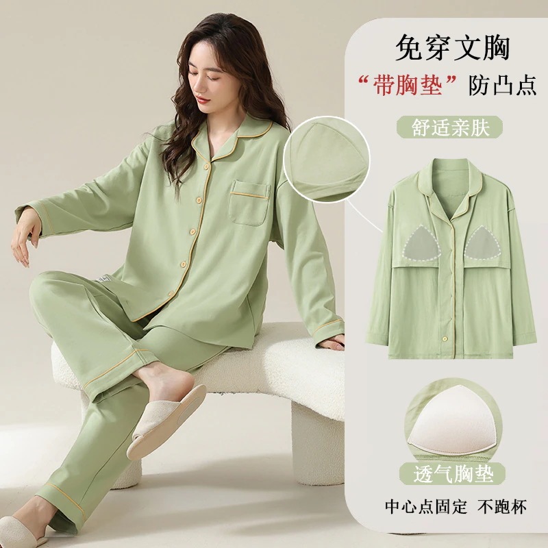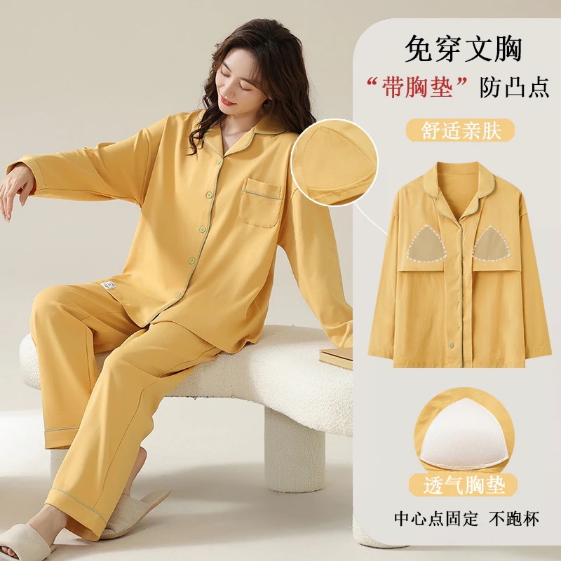 A類抗菌ラケット綿入り胸当てパジャマ女性春秋長袖シンプルカーディガン秋のレディースルームウェアセット