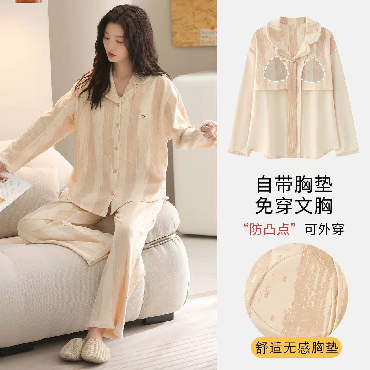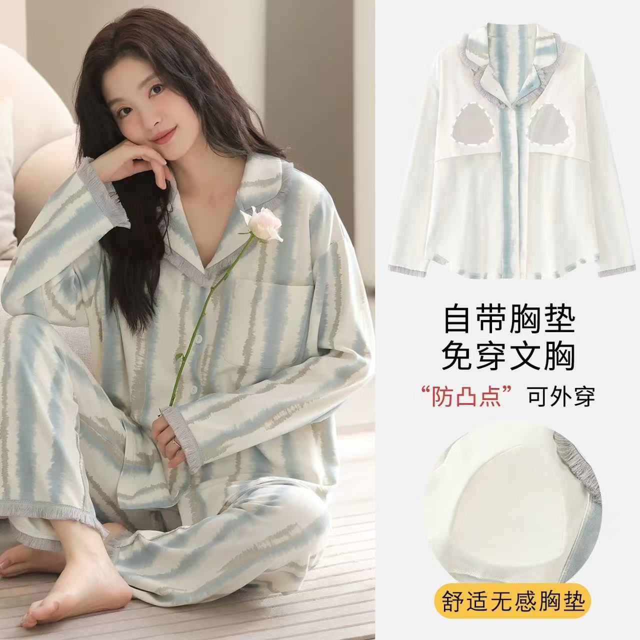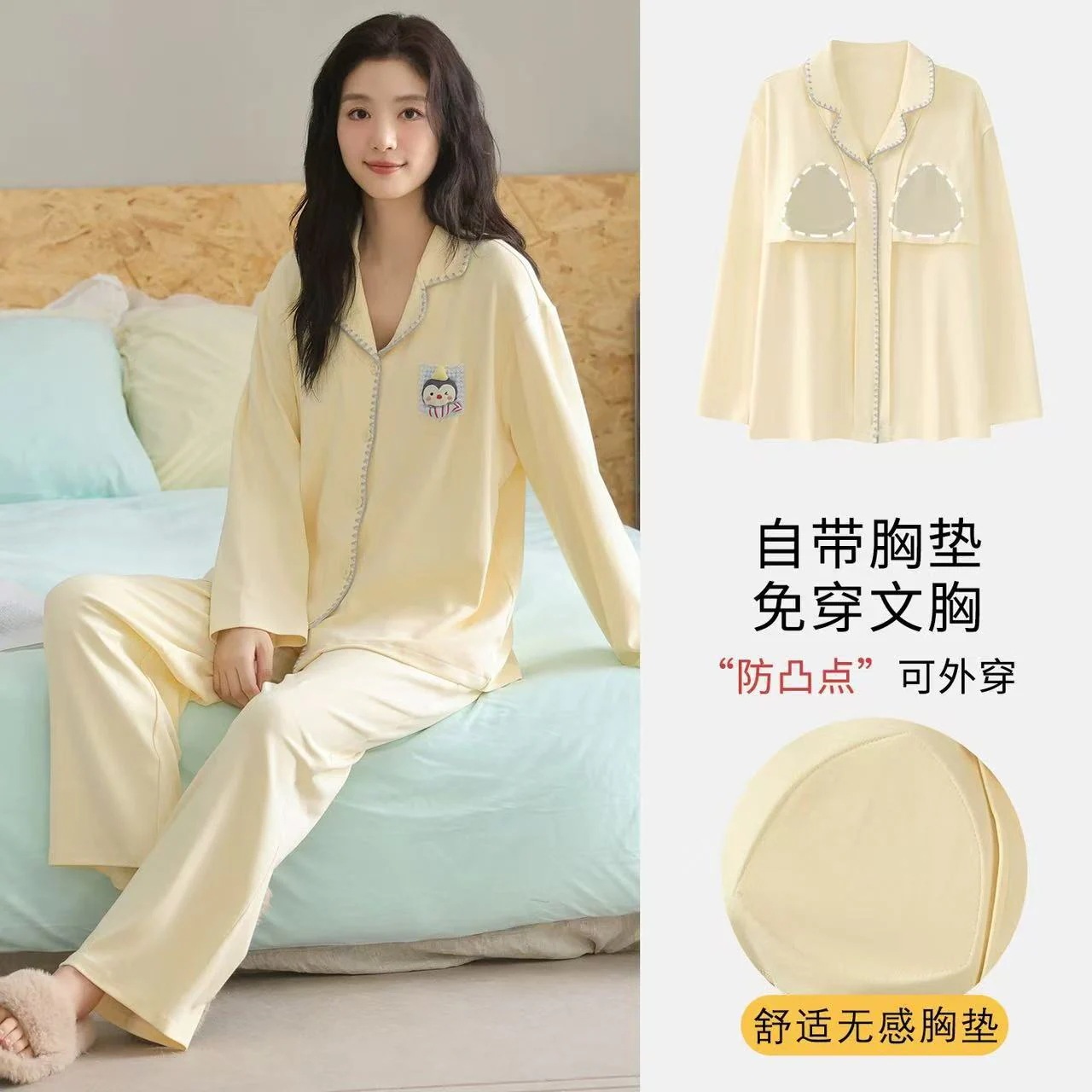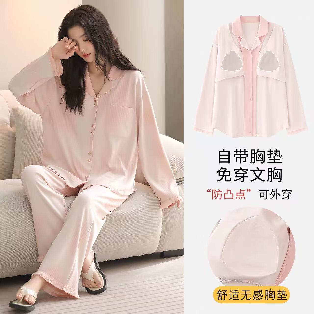 パジャマ女性春秋胸当て付き長袖秋新甘外着部屋着レディーススーツ