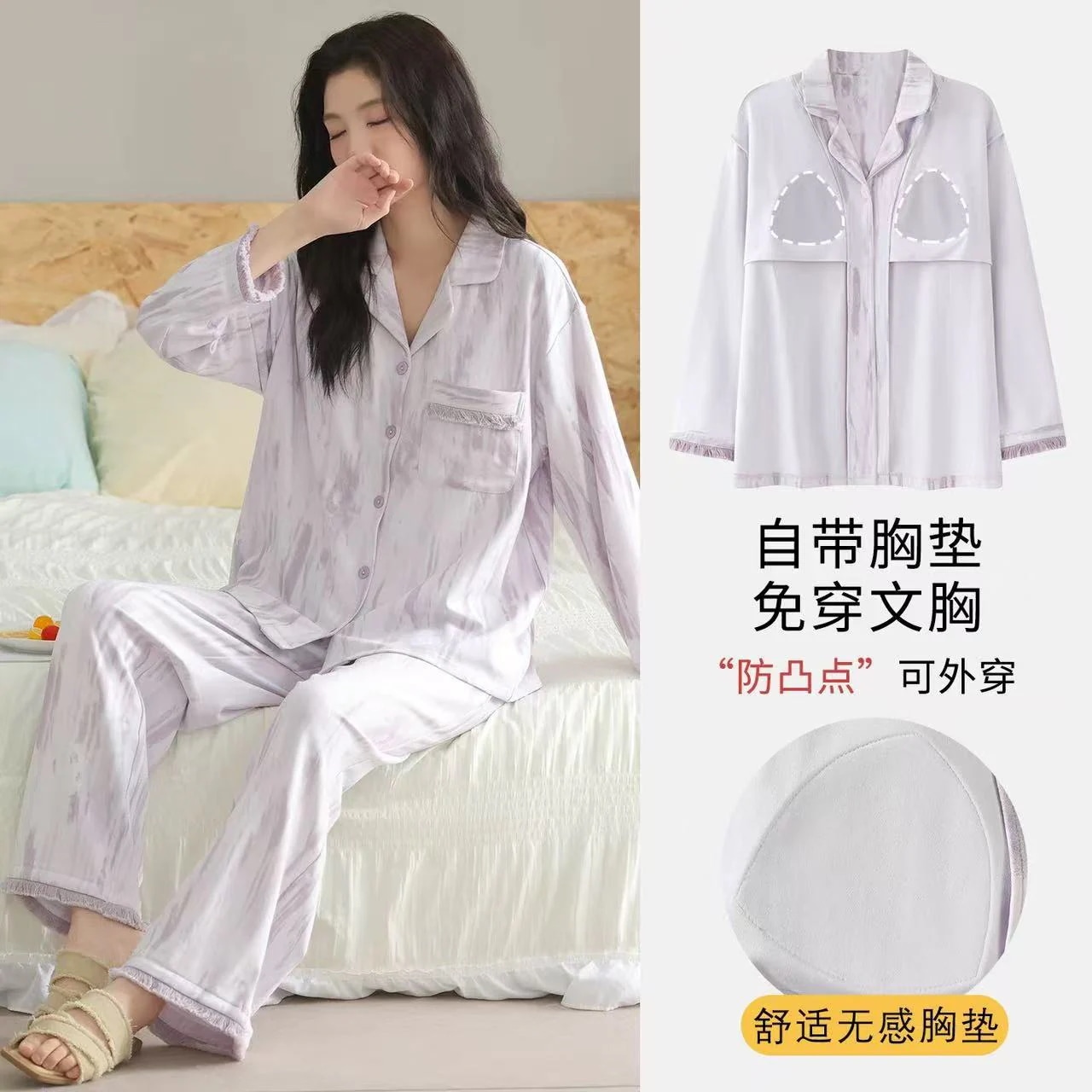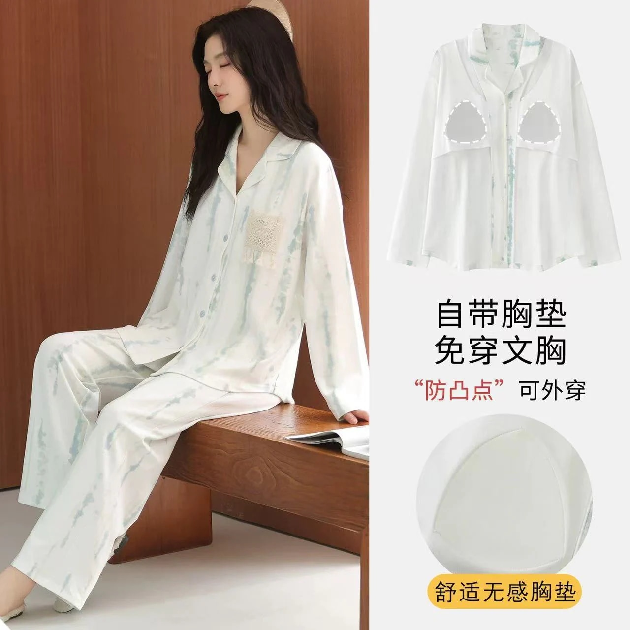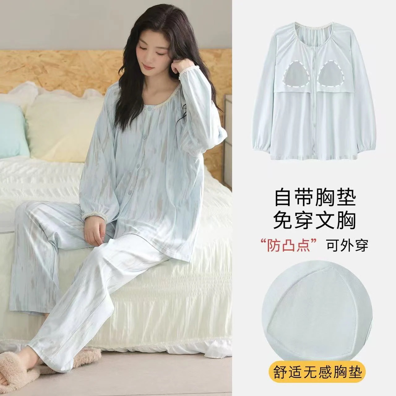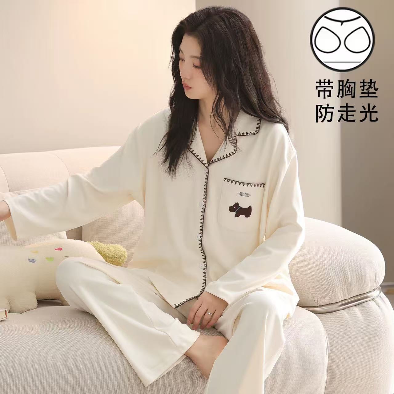 パジャマ女性春秋胸当て付き長袖秋新甘外着部屋着レディーススーツ