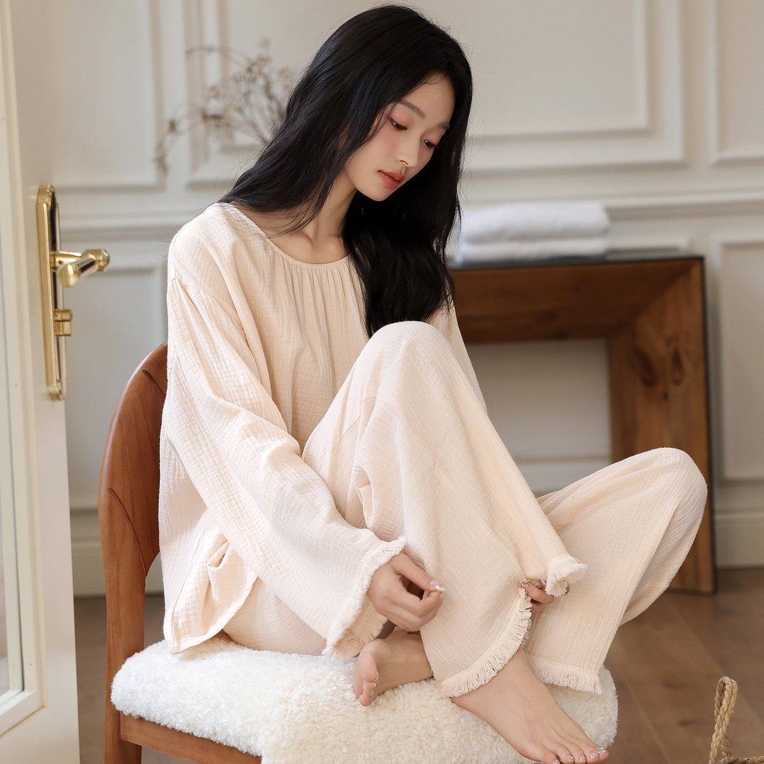 パジャマ女性春秋親肌雲綿長袖スーツ高級感外着長袖長ズボン大判部屋着