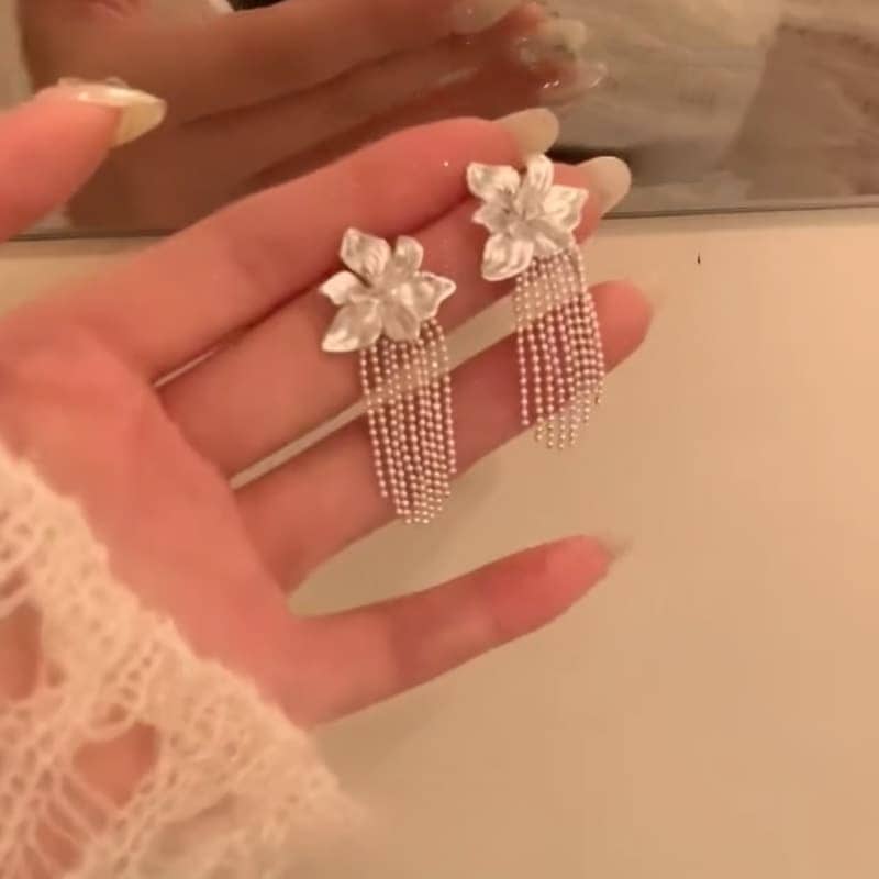 【送.料.無.料】金属アレルギー対応 フラワー タッセル パール 上品 高級感 ピアス 小ぶり デイリー