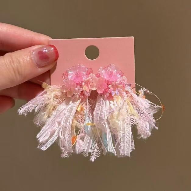 【送.料.無.料】金属アレルギー対応 ピンクフラワー タッセル 春 リゾート ピアス 小ぶり デイリー