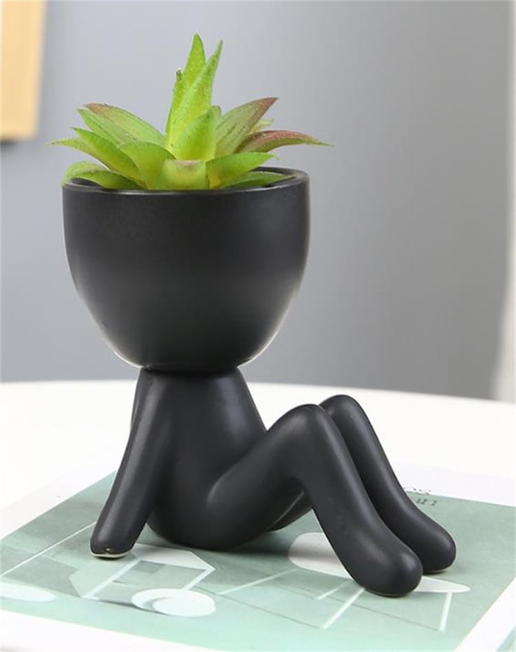 激安セール 2色から選べる北欧風陶器製植木鉢 ユニークな人型デザイン 多肉植物に適したミニプランター オフィスやリビングのデスクトップインテリア雑貨として人気の卓上飾り盆栽