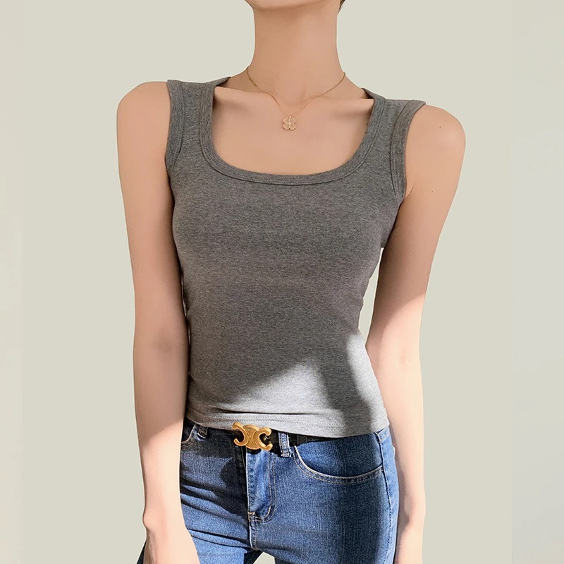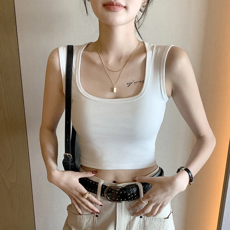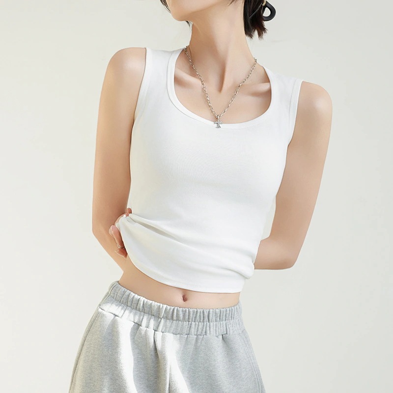 女性用 純綿 タンクトップ 夏の新作 インナー ワイドショルダーで脇の肉をカバーしシルエットを美しく見せるホワイトのインナー タンクトップ