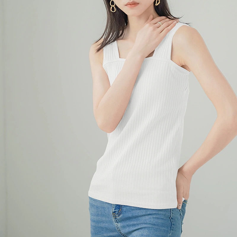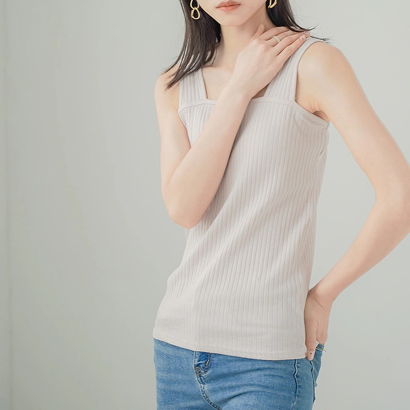 純綿のタンクトップ(女性用) ストライプ柄 ロング丈 インナー用タンクトップ