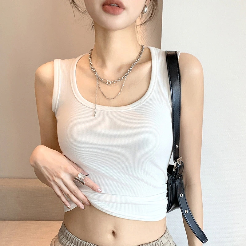 新作 タンクトップ キャミソール インナー ノースリーブトップス レディース 夏用 アウターとしても着られる Instagramトレンド セクシーなショート丈インナー Tシャツ キャミソール