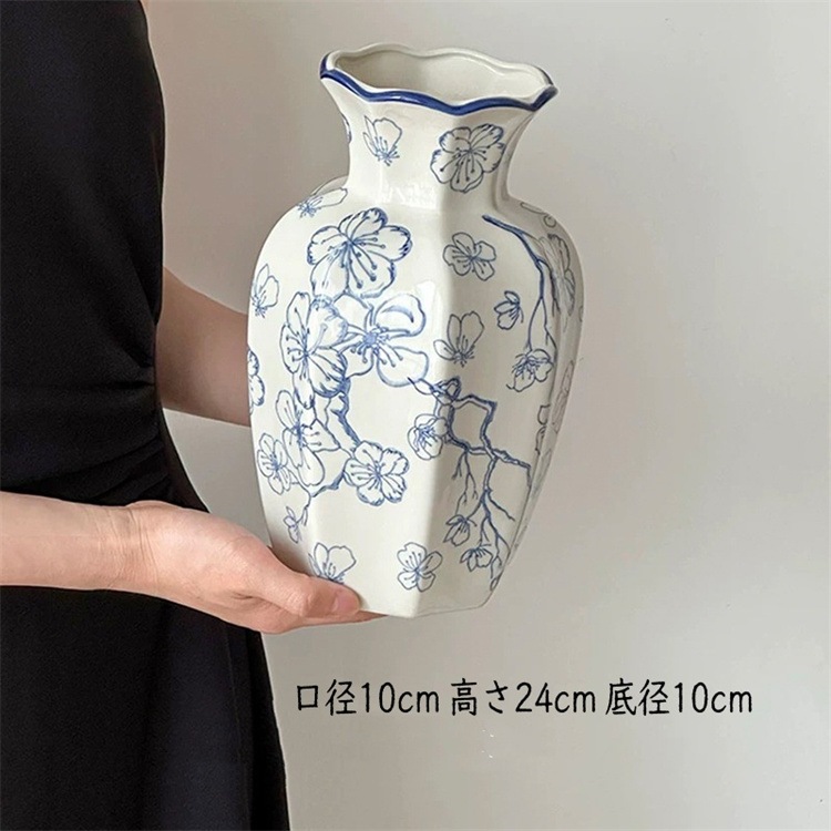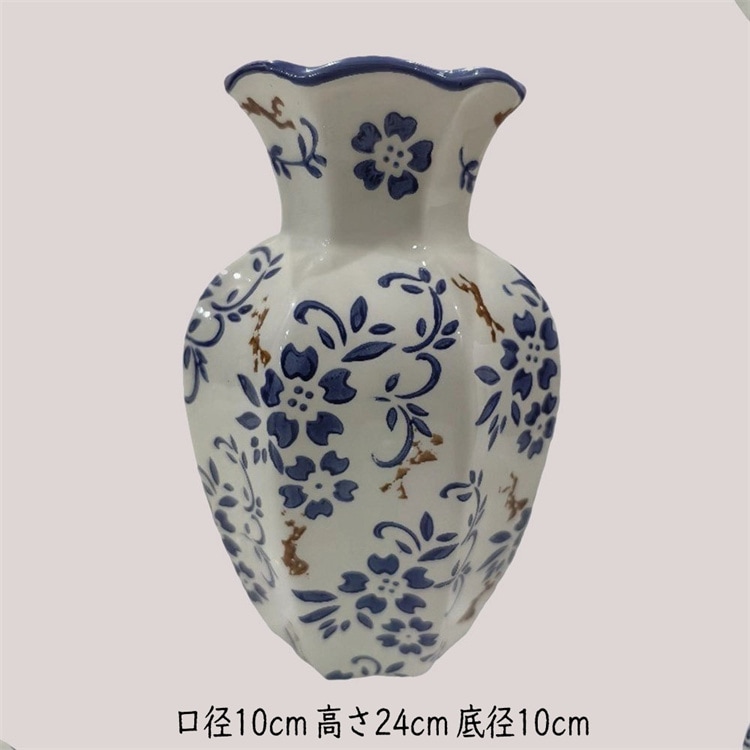 早い者勝ち 伝統的な藍白釉薬の陶製花瓶 新築祝いや引っ越しご挨拶に選ばれる落ち着いた風合いのインテリアグッズ