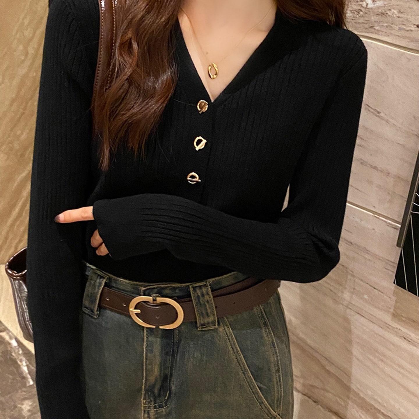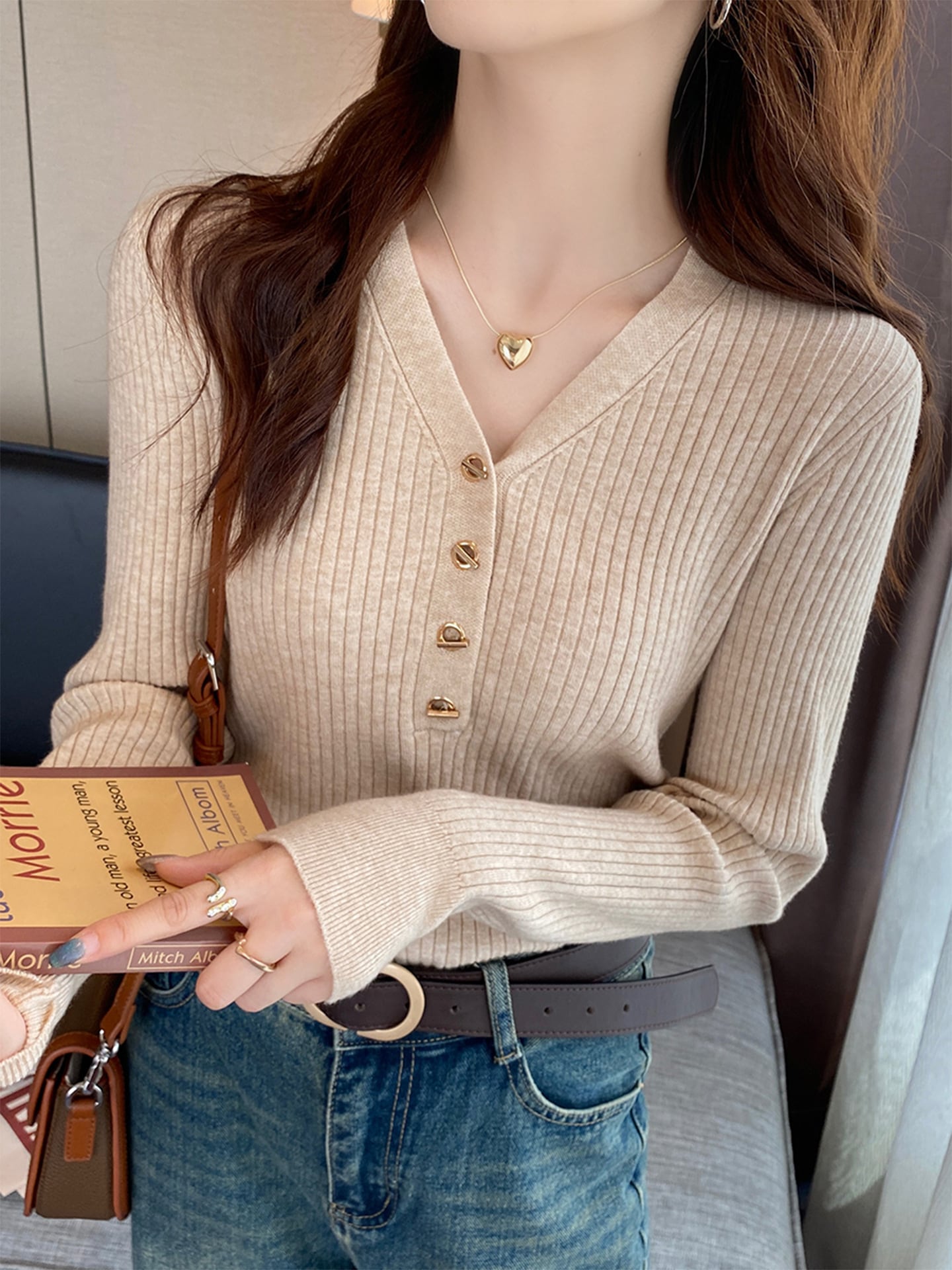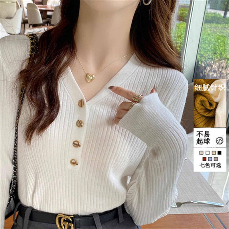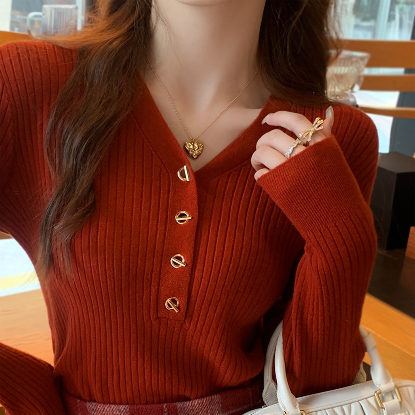 初春 ニットインナー セクシー Vネック着やせ ニットトップス 冬アンダーウェア 韓国ファッション 気質百掛け セーター レディース 暖かい 長袖ベーシックニット人気なリブニット ニット秋冬