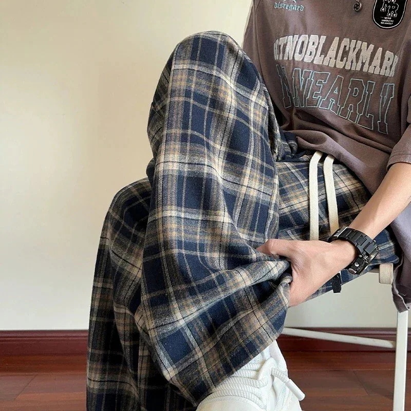 ジョガーパンツ スタイル レトロ フランネル 男性用 春・秋用 ゆったりストレート ワイドレッグ カジュアルパンツ