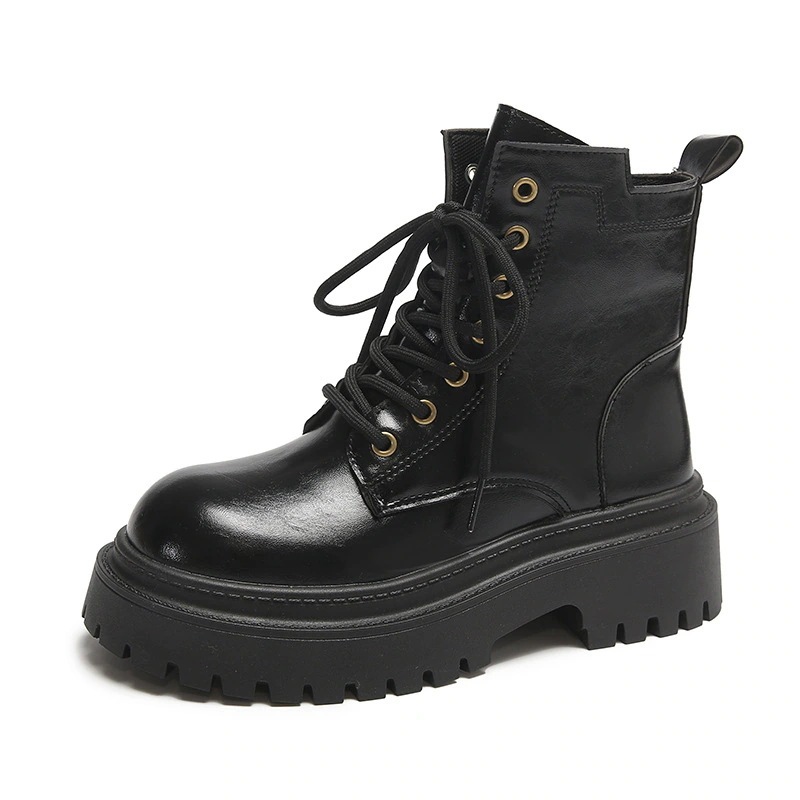 レディース オーバーサイズ ブリティッシュスタイル厚底 レースアップ バイカー ワークブーツ